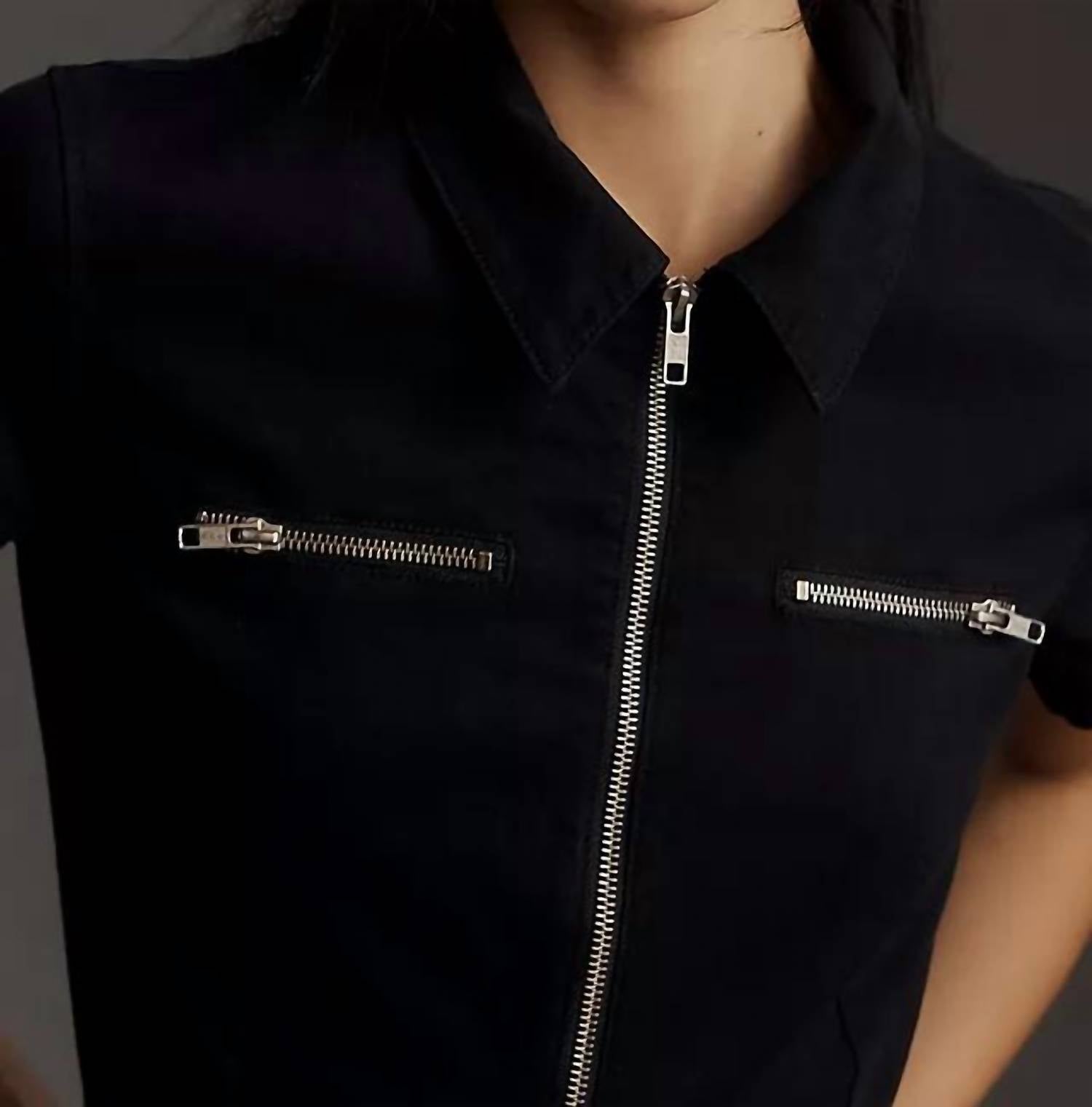 Slightly flared pants are all the rage right now and these are no exception. Pair these with your favorite tee for a more casual look, or with your favorite button-up blouse for an evening out. Experience effortless elegance with the Martina Short Sleeve Flare Jumpsuit by PISTOLA, crafted from a soft cotton blend for a flattering slim fit. Designed with a minimalist solid black pattern, it adds a sophisticated edge with its flared leg style. Featuring a convenient zip closure, this piece is perfect for special occasions such as holiday parties, effortlessly combining style with practicality thanks to functional pockets. Ideal for spring and Thanksgiving events, embrace the chic versatility of this timeless design.