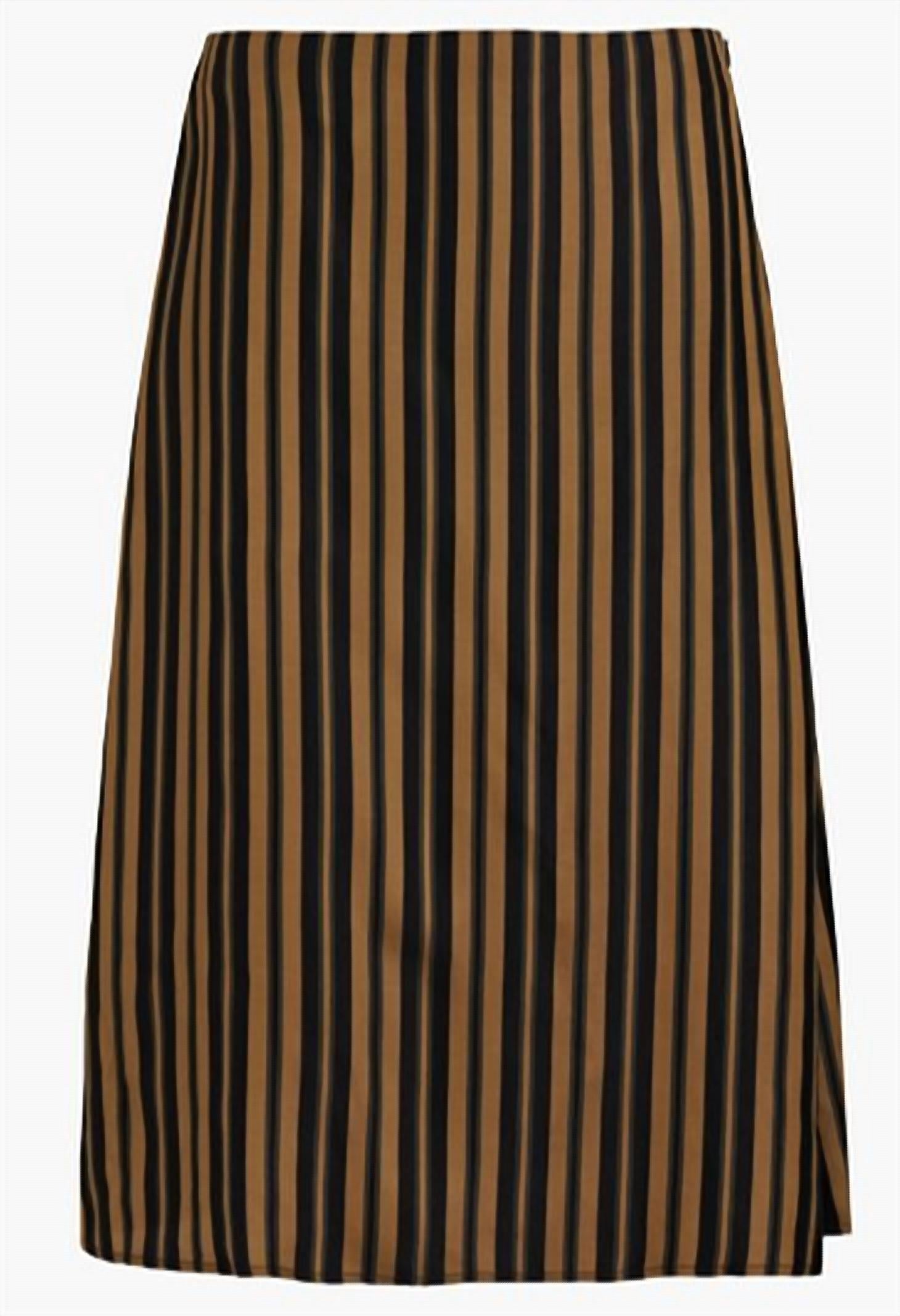 The midi length skirt is here to stay and we especially love this style. This A-line skirt features a classic striped pattern that adds timeless style. It has a concealed side zipper for a smooth, clean look. Made from a soft blend of viscose and silk, it’s best cared for with dry cleaning to keep it looking its best. Crafted from 86% Viscose and 14% Silk.