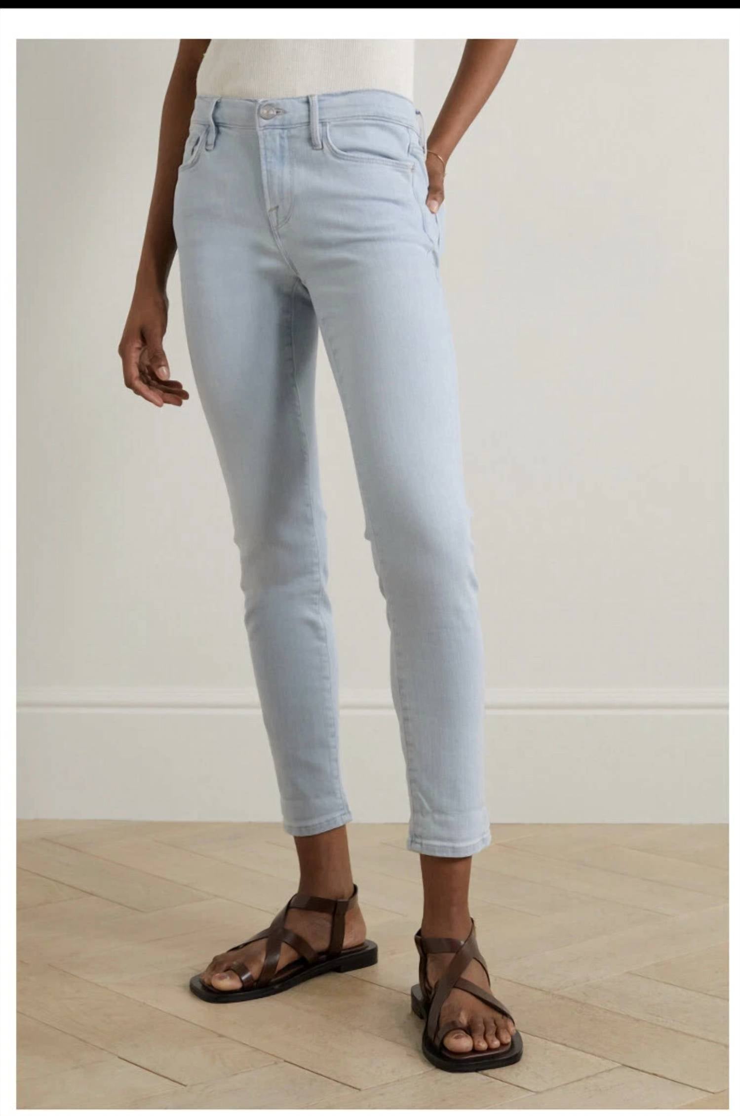 These boyfriend jeans make anything you pair them with look effortlessly cool. Introducing FRAME's Le Garcon Boyfriend Jeans in the shade of Clarity, designed with a mid-rise skinny silhouette for women. These jeans are crafted from a comfortable cotton blend with composition details of 77% cotton, 18.5% modal, 3.5% elasterell-p, and 1% elastane, all imported from China. The classic five-pocket style features a button closure, providing both functionality and timeless style. Easy to care for, simply machine wash and tumble dry to maintain their perfect fit, with dimensions measuring a 9" rise, a 29" inseam, and a 12" leg opening.