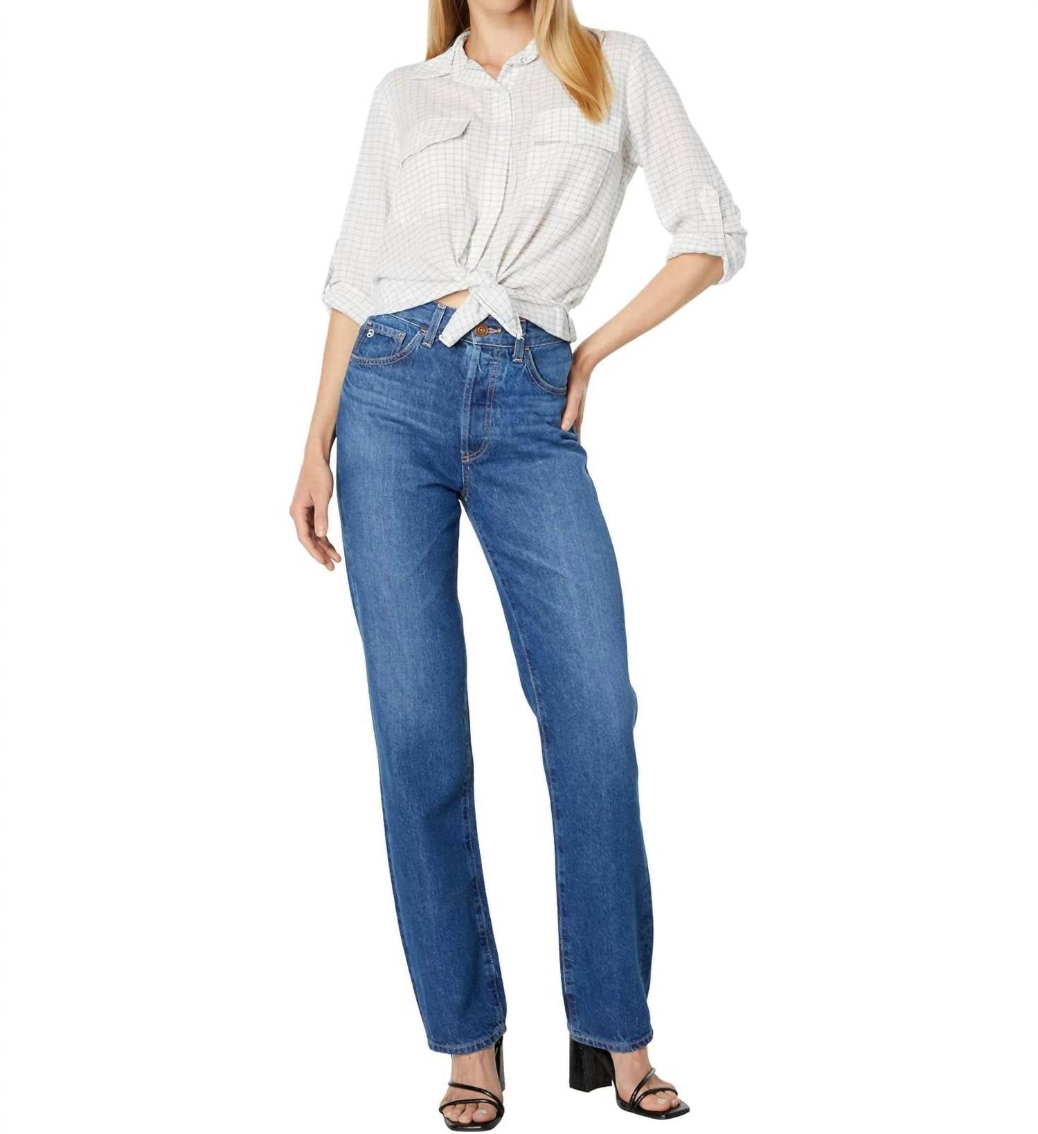 Fit to perfection, we love these high-waist jeans and you will too. Step out in style with the Alexxis High-rise Vintage Straight Jeans by AG Jeans, designed for a flawless streetwear look this spring. Crafted from premium cotton, these high-rise jeans feature a relaxed straight leg with a 31" inseam, a 16" leg opening, an 11 1/2" front rise, and a 15" back rise. Equipped with a zip fly and button closure, they boast a classic five-pocket style that complements their sleek solid pattern. Easy to care for, simply machine wash and tumble dry to keep them looking fresh.