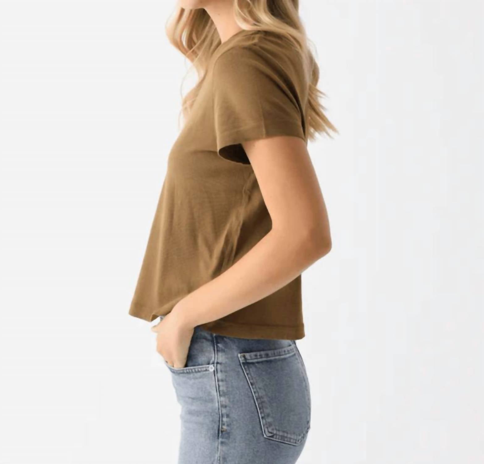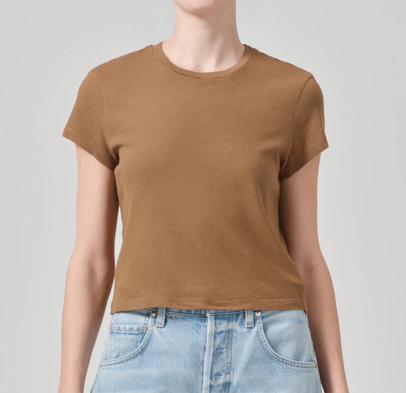 Look no further, you just found your perfect tee! Experience timeless appeal with the Kyle Short Sleeve Tee by Citizens of Humanity, designed in Sandie. Crafted from 100% ultra-breathable cotton, this tee drapes elegantly on the body for all-day comfort. The piece features a slightly cropped boxy fit and a classic crewneck, ideally pairing with high-rise denim. Effortlessly pull it on and care for it with a simple machine wash.