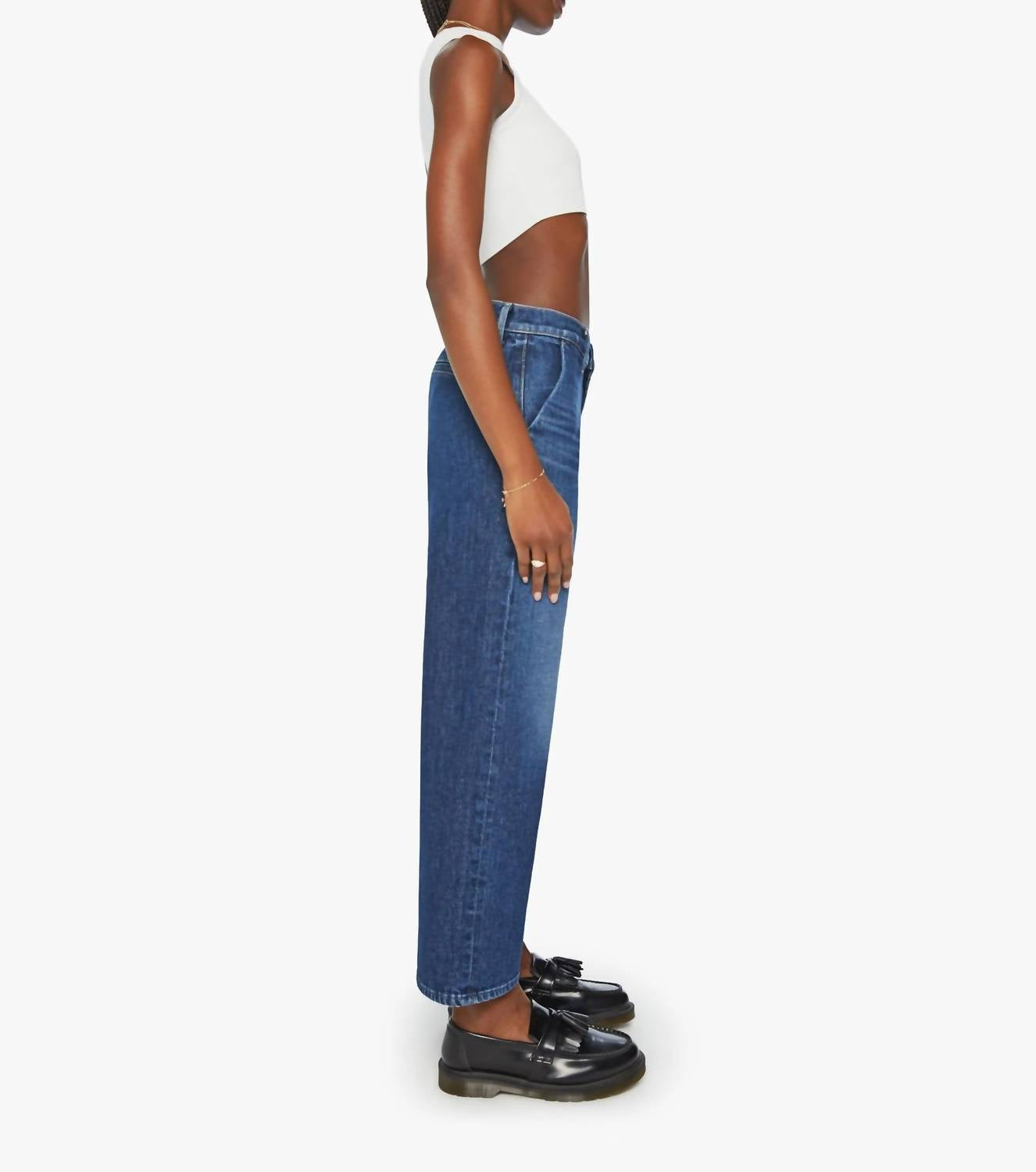 A flattering silhouette that's suprisingly versatile. Elevate your wardrobe with Women's Yee Haw The Dodger Prep Jeans by Mother, perfect for a bold, streetwear-inspired look. These high-waisted jeans feature a loose wide leg and are crafted from 97% Cotton, 2.5% Polyester, and 0.5% Elastane for a comfortable fit. Designed in a medium wash blue with whiskering and fading at the knee, they boast a flattering 11" rise, 27.5" inseam, and 19.5" leg opening. Equipped with slit pockets and a zip closure, these stylish jeans are ideal for a vacation-ready outfit. Model is 5'9" and wears size 26.