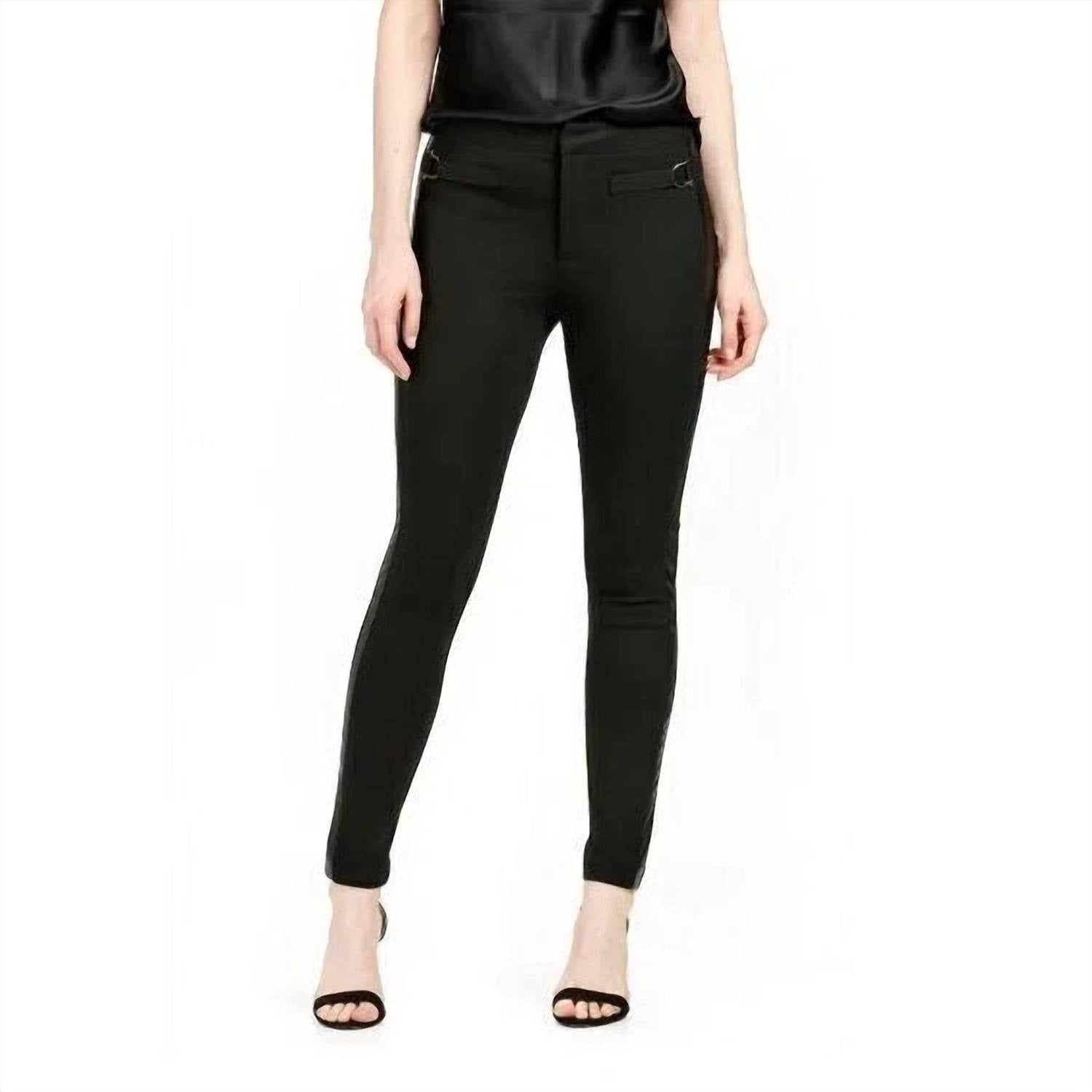 A skinny pant that is both flatering and comfortable. We love this style because it works great with boots, or without! PAIGE Merci Skinny High Rise Dress Pants Made from sleek ponte fabric that elongates and flatters your figure these high-rise skinnies are a dressier alternative to your regular denim Polished hardware and faux-leather side stripes Zip fly with hook-and-bar closure No pockets 67% rayon, 28% nylon, 5% spandex Machine wash, line dry Made in the USA of imported fabric Inseam 27.5"