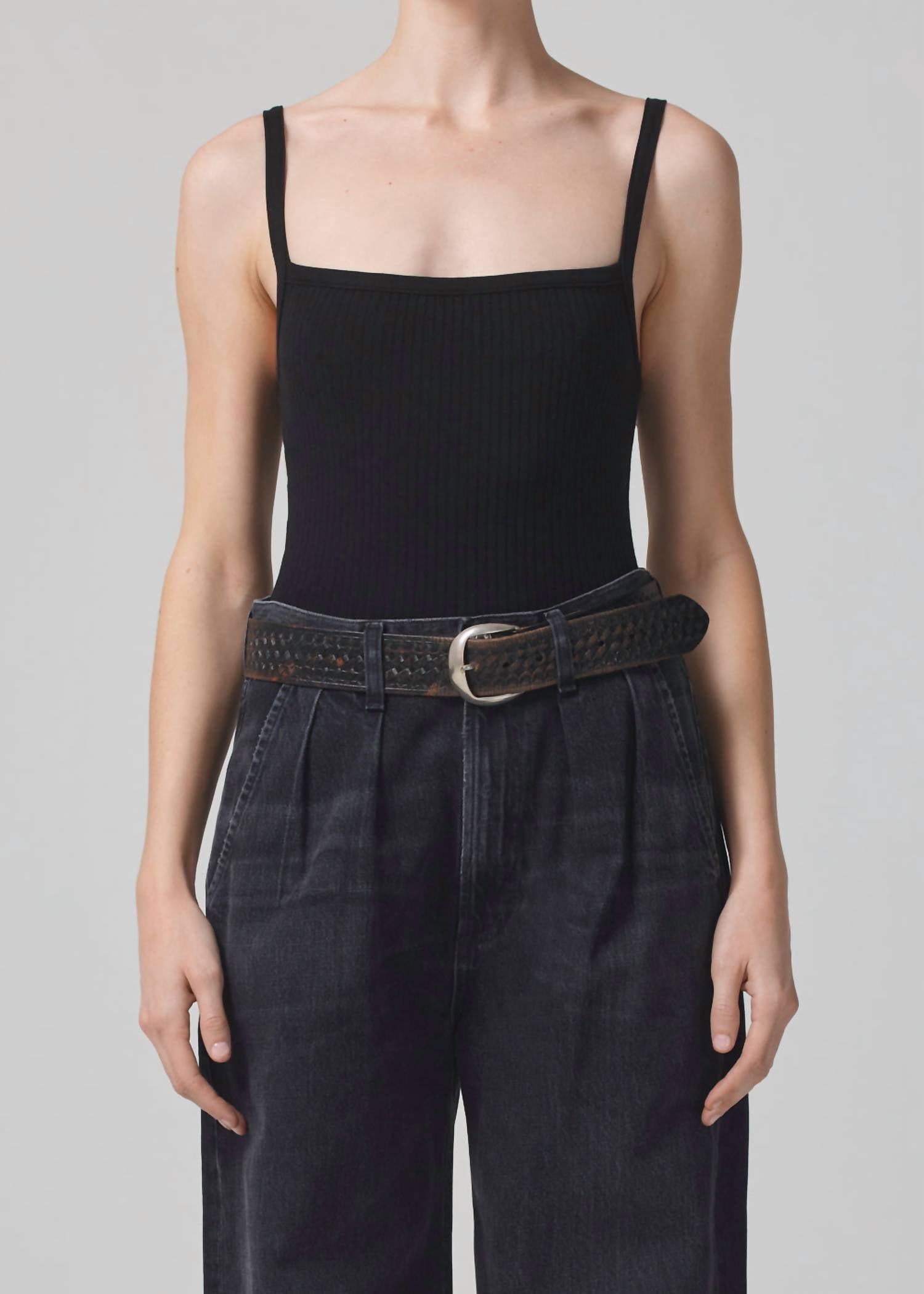 The Harper bodysuit is crafted from soft, supportive rib with a sloped neckline. This fit is true to size. Off white. Feels Like: Form-fitting rib with supportive feel and just the right amount of stretch. 48% Tencel Lyocelleucalyptus Pulp, 47% Organic Cotton, 5% Spandex. Machine wash cold. Made in USA with imported materials.