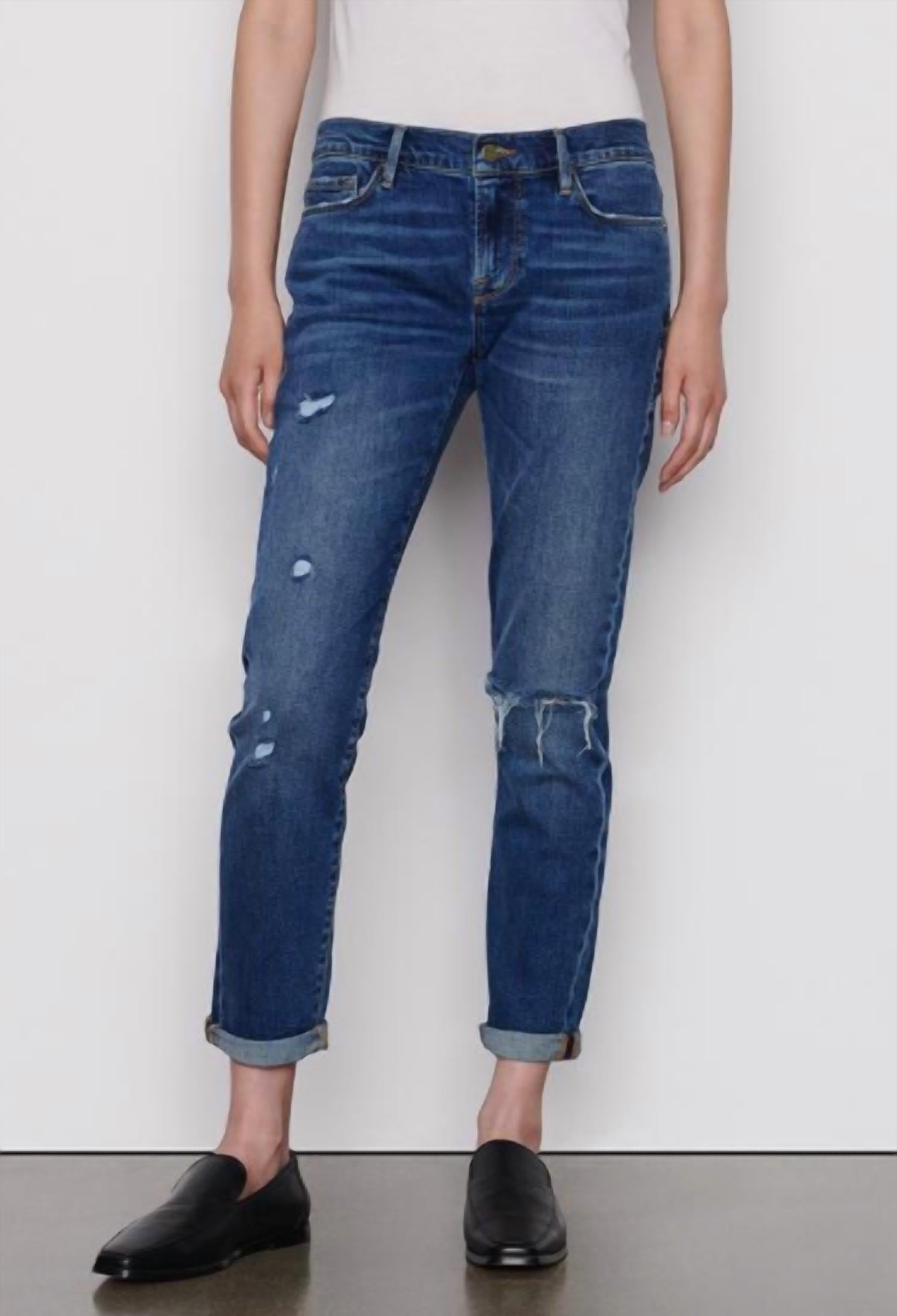 Updated mid-rise boyfriend jean for fall 2021 with tattered detailing for an undone feel. It’s cut from our new anti-microbial fabric that eliminates 99.9% of bacteria from the jean’s surface and is anti-odor with wicking properties that breathe and regulate your temperature. This silhouette is meant to be slightly oversize and comfortable fit with a hint of stretch—we recommend sizing down if you prefer a more fitted look. Mid Rise Fit. Comfort Stretch Denim. 68% Cotton/18% Lyocell/18% Frescura/2% Elastane. Machine Wash. 7.5" Front Rise/29" Inseam/12" Leg Opening. Model is 5'10" Tall/177cm and is Wearing a US Size 25