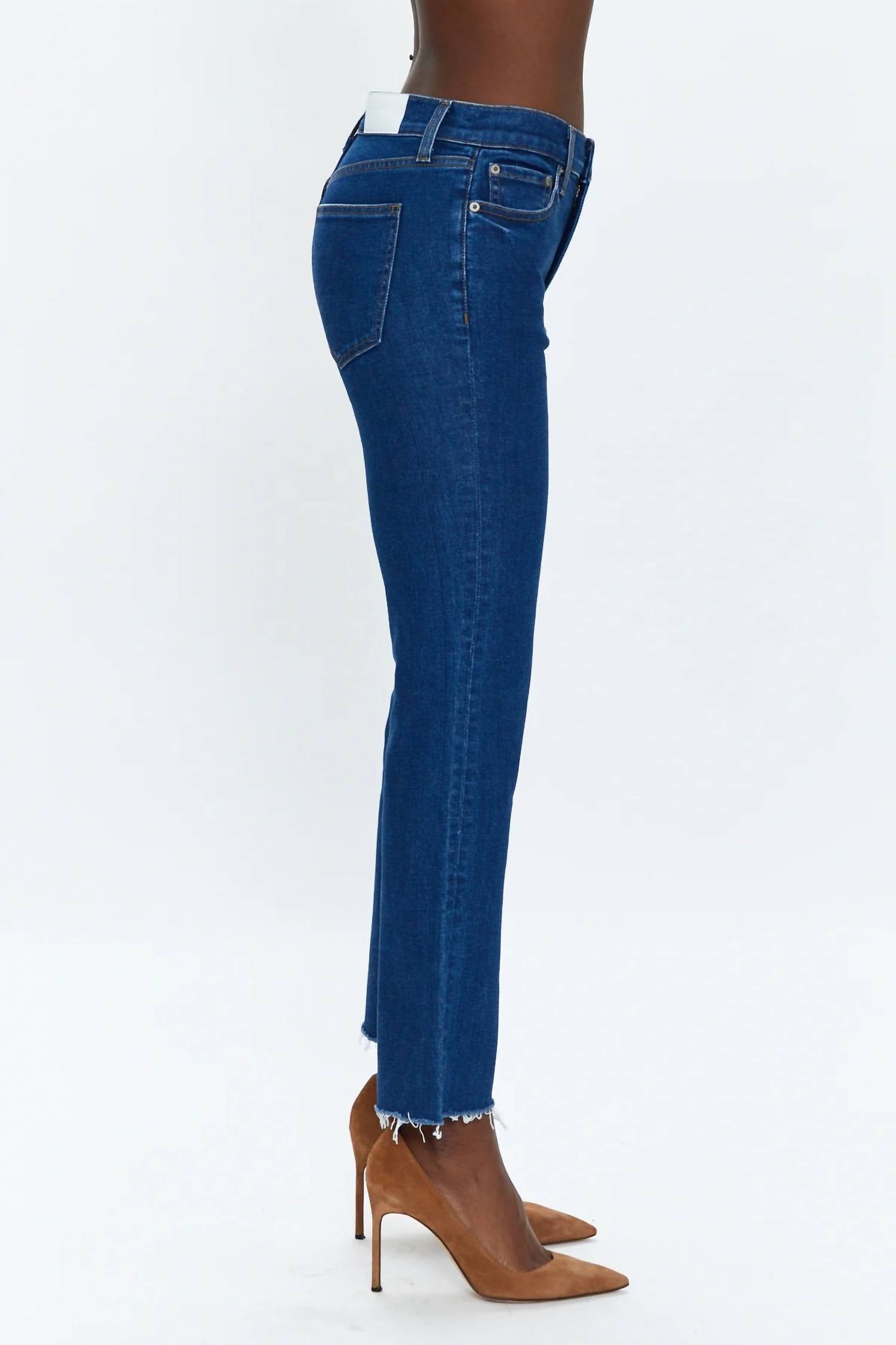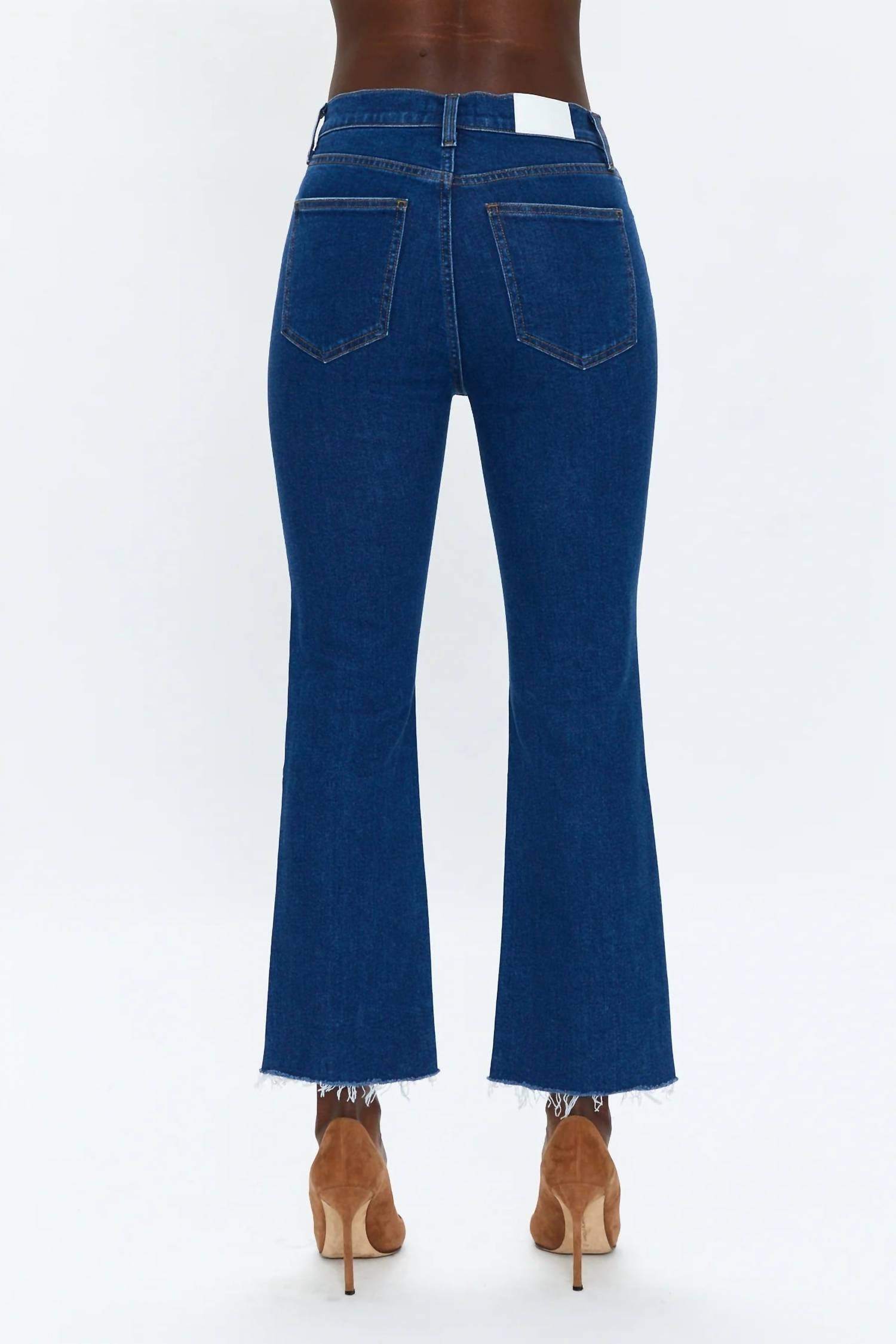 If you're looking for boot-cut, this is the jean for you. Discover the PISTOLA Lennon Cropped Bootcut Jeans in the Waterloo shade, perfect for elevating your wardrobe with stylish versatility. Featuring a high-rise, relaxed fit, these jeans are crafted from a comfortable blend of 95% Cotton, 4% Elasterell, and 1% Spandex. With a flattering bootcut leg, 11" front rise, and 27" inseam, they offer both style and comfort. Designed with a button closure, these jeans are an ideal choice for travel and streetwear occasions.
