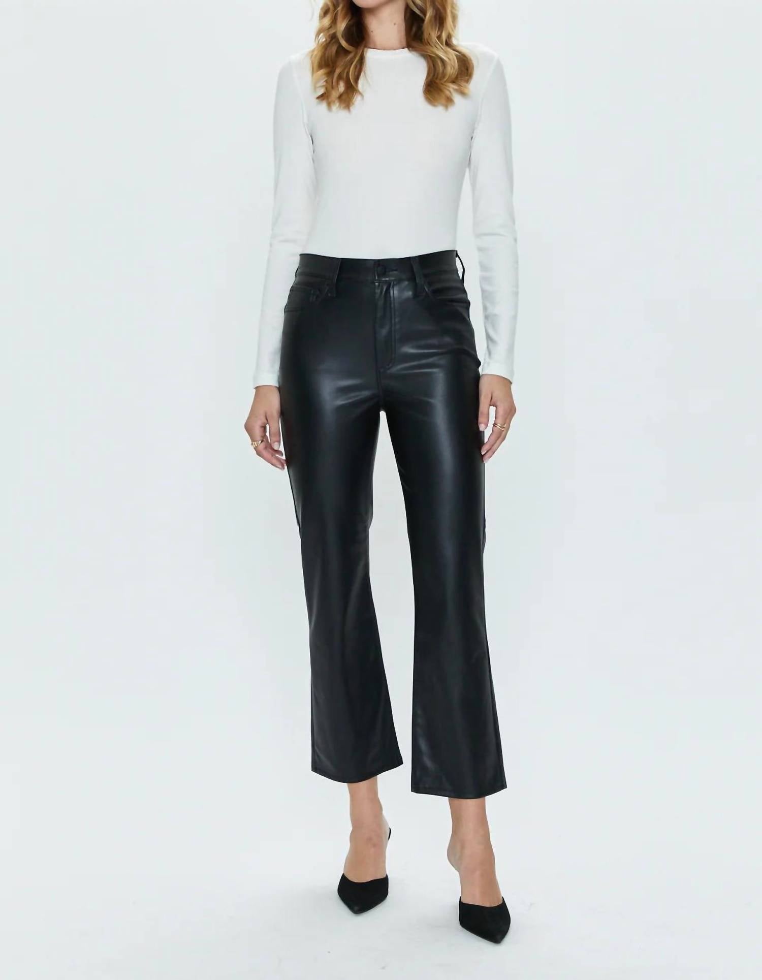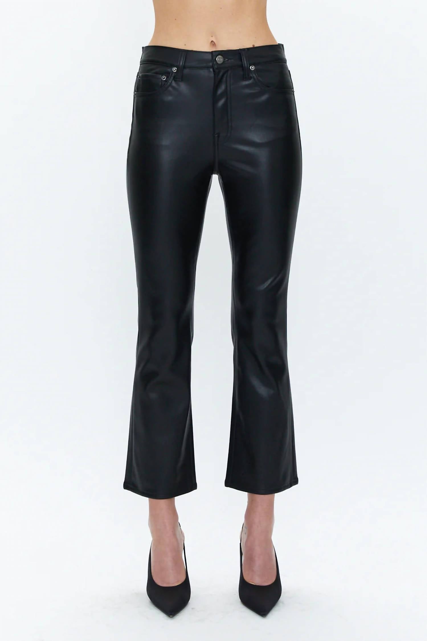 The trend report says boot-cut is in and that's exactly why we love this style. They are fit to perfection, flattering on any body type, and comfortable. They will be your go-to all season long. Introducing the Lennon Vegan Leather Pants by PISTOLA, a sleek and chic addition to your wardrobe. These black boot cut pants hug you from the hips to the knee before flaring out for a flattering silhouette, complete with a zip closure for easy wear. Designed with flared legs and pockets, they are perfect for both casual and dressy occasions. Care: Dry clean only.