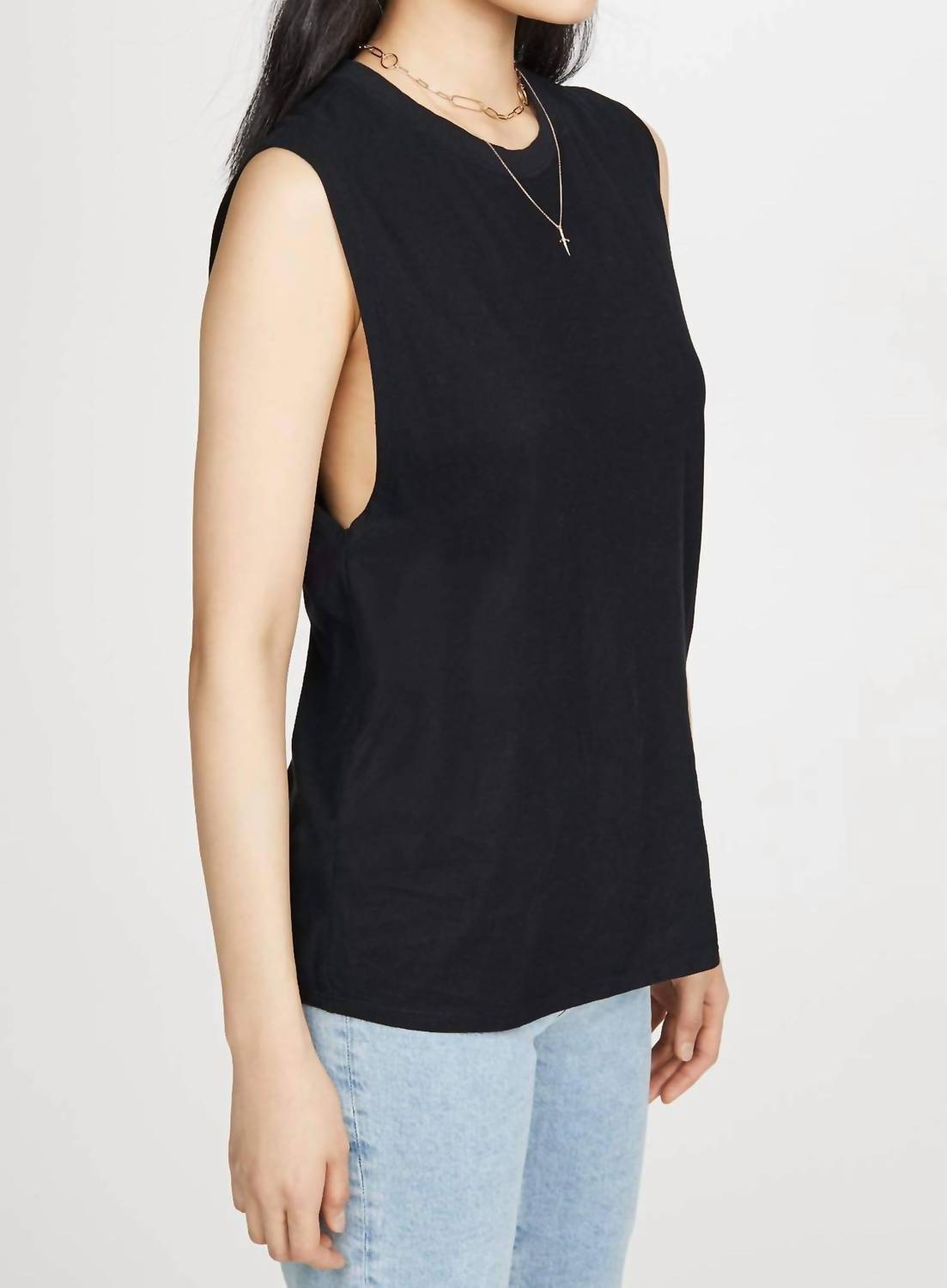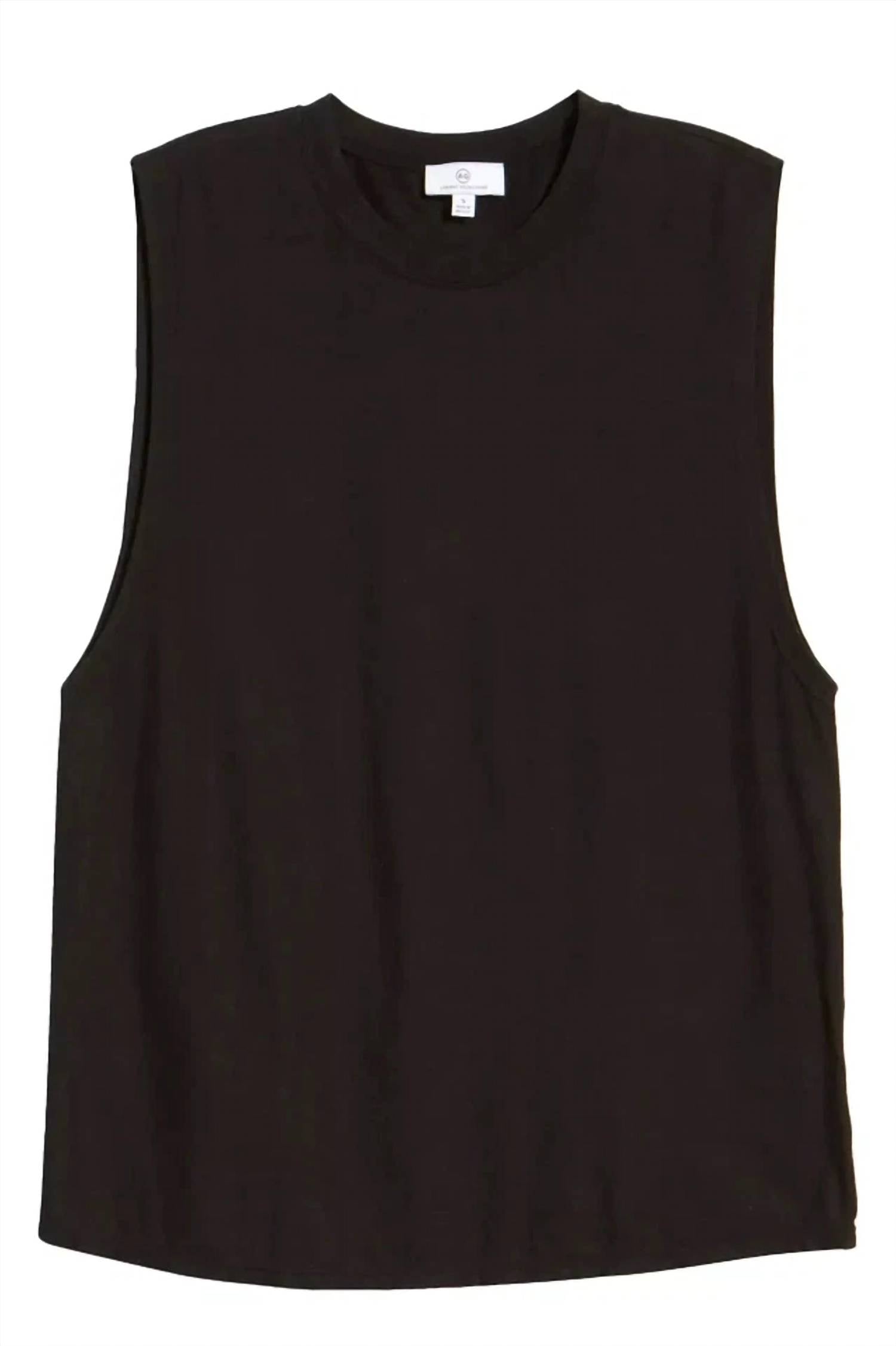 The perfect tank top for those warmer weather seasons. The Zoey Tank Top by AG Jeans is a stylish choice for a minimalist summer wardrobe. Designed with a sleeveless construction and crafted from 100% cotton, this true black tank offers a comfortable, looser fit reminiscent of a muscle tank. Its extended length and straight hemline provide a flattering silhouette. Closure: Pull on. Care instructions: Machine wash and tumble dry. Ideal for vacation or Mother's Day occasions.