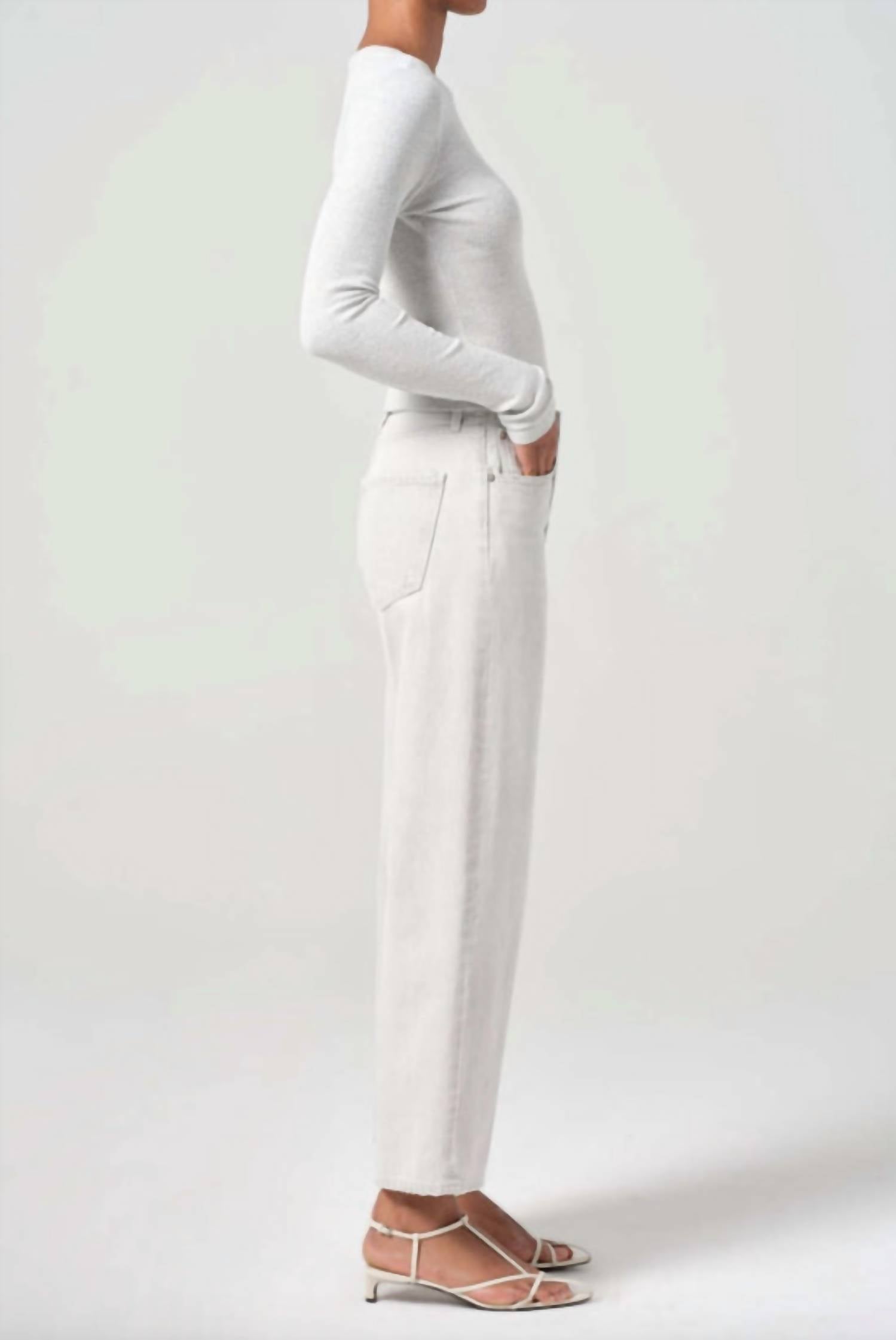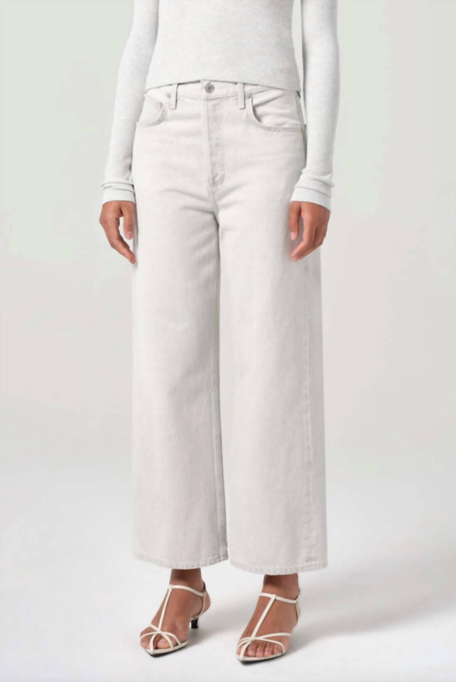 Just as cute as they are comfortable. Introducing the Ren High Rise Wide Leg Jean by AGOLDE, a must-have for minimalist styling in any wardrobe. Made from 100% regenerative organic cotton, these gray wide-leg jeans feature a relaxed fit and a high-rise waist for maximum comfort and style. Closure: Button closure. Care: Machine wash and tumble dry. With a 12.25" rise and 27.5" inseam, they are perfect for pairing with anything from tees to sweaters.