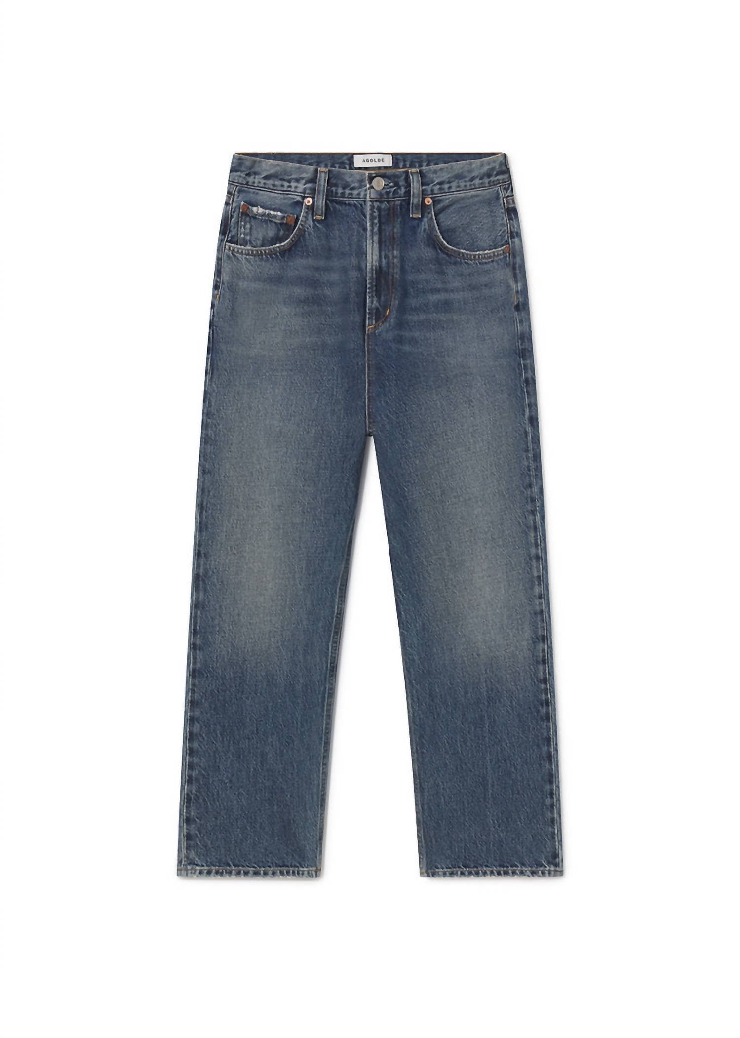 This classic straight leg jean has a perfect fit and goes with just about everything. Discover the Valen Jean: Mid Rise Vintage Straight Jeans by AGOLDE, a chic addition to any wardrobe in the stylish Surround color. These jeans boast a mid-rise waist with a slim-straight fit through the leg, offering a flattering silhouette perfect for versatile styling. With a solid pattern and equipped with functional pockets, they feature a secure button closure for comfort and ease. Care for these streetwear favorites is effortless with machine wash and tumble dry instructions.