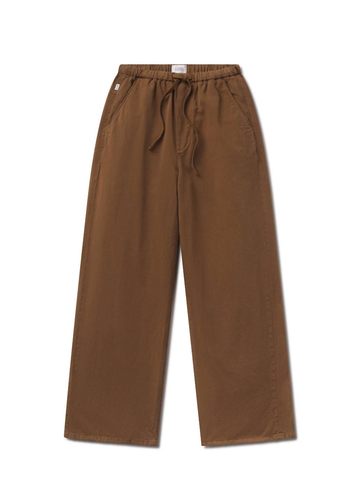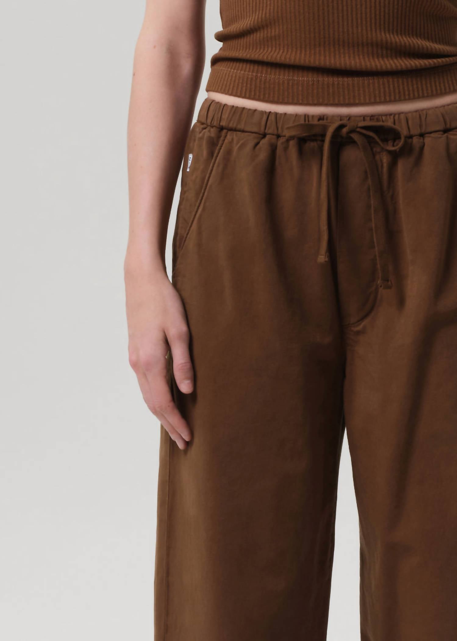 Embrace effortless elegance with the Aurora Pull On Pants by Citizens of Humanity, a minimalist essential for your Spring wardrobe. These high-rise pants feature a wide-leg style, crafted from an airy Italian twill blend of cotton and flax for a soft touch and fluid drape. In a deep bronze hue, the relaxed fit offers a drawstring closure and comes complete with pockets, perfect for vacation styling. Care is simple with machine wash and tumble dry instructions, ensuring easy maintenance.