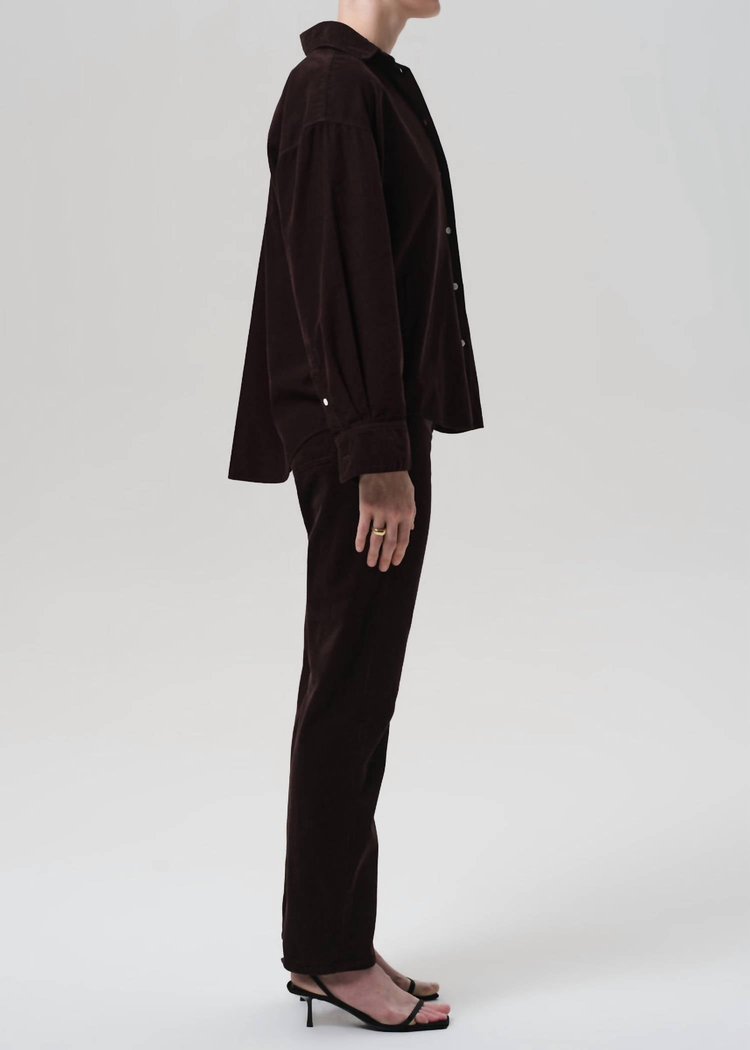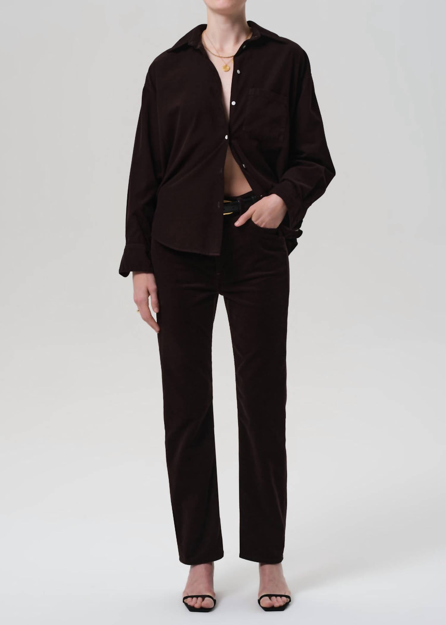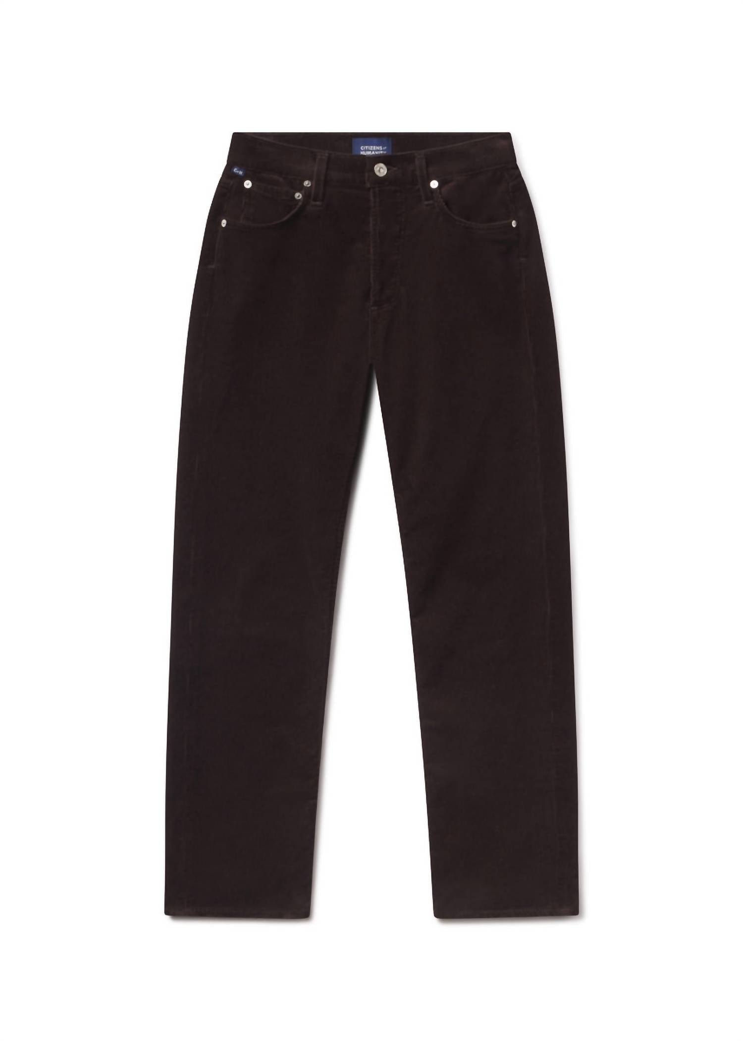 This classic straight leg jean has a perfect fit and goes with just about everything. Introducing the Blaine Vintage Straight Jeans by Citizens of Humanity, a must-have for your wardrobe with their high-rise and timeless straight leg design. These jeans are crafted from soft, midweight corduroy in a deep brown 'Barrister' color, offering slight stretch for added comfort. Closure: Button Closure. Care: Machine wash, tumble dry. Enjoy the perfect blend of style and ease in these vintage-inspired jeans.