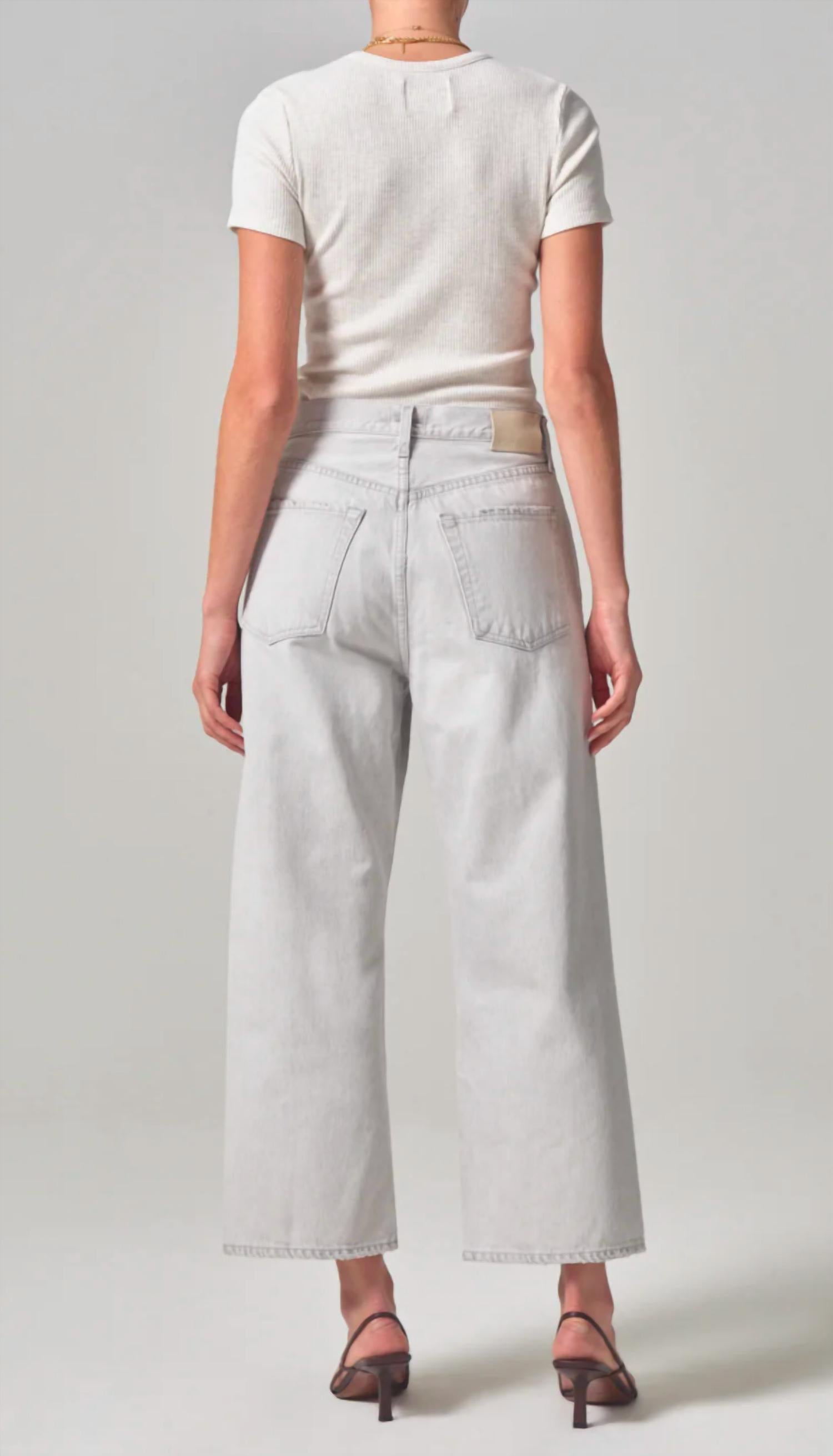 Experience the charm of vintage-inspired design with the Gaucho Vintage Wide Leg Jeans by Citizens of Humanity in a subtle Comet hue. Crafted from 100% organic cotton, these jeans offer a relaxed fit with a wide leg silhouette, featuring a 12 3/4" rise and 26 1/2" inseam. Closure: Button fly. Made in the USA with imported materials, these jeans are machine washable cold inside out and can be tumble dried on low.