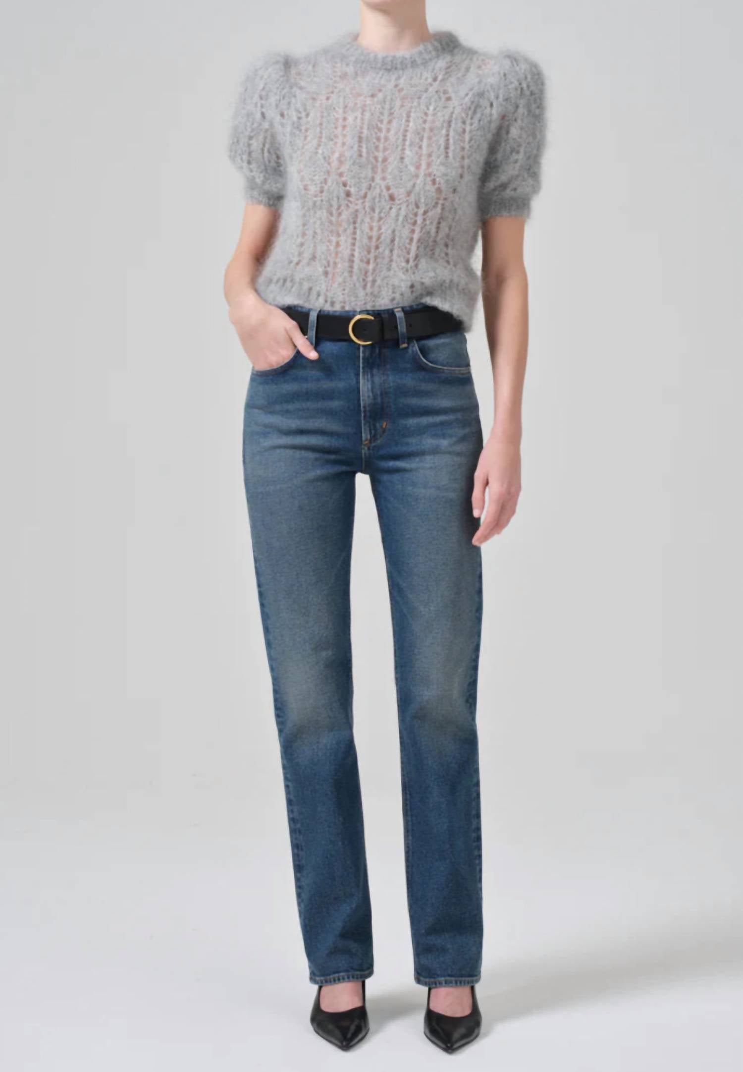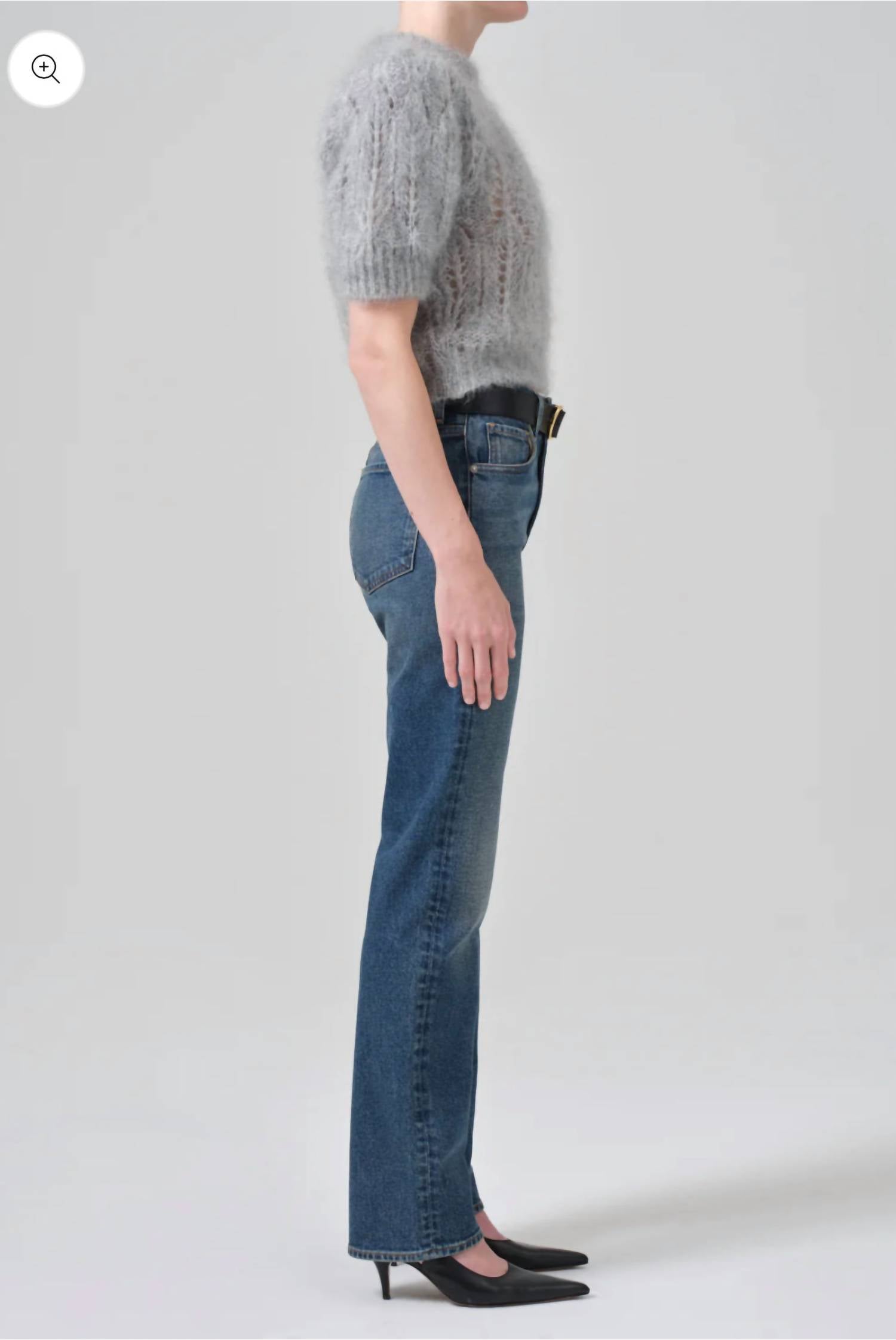 These must-have jeans are fit to perfection. Introducing the Zurie Straight Jean by Citizens of Humanity, where classic meets contemporary design. With a medium indigo hue accented by fading and whiskering, this elegant straight leg stands out with a sculpted silhouette. Composition: 98% Cotton, 2% Polyurethane. Inseam: 31.75". Rise: 11.75". Closure Type: Zip Fly. Experience a perfect blend of signature archive denim with just the right stretch, promising a true-to-size fit and comfort. Machine wash cold inside out and tumble dry low for easy maintenance.