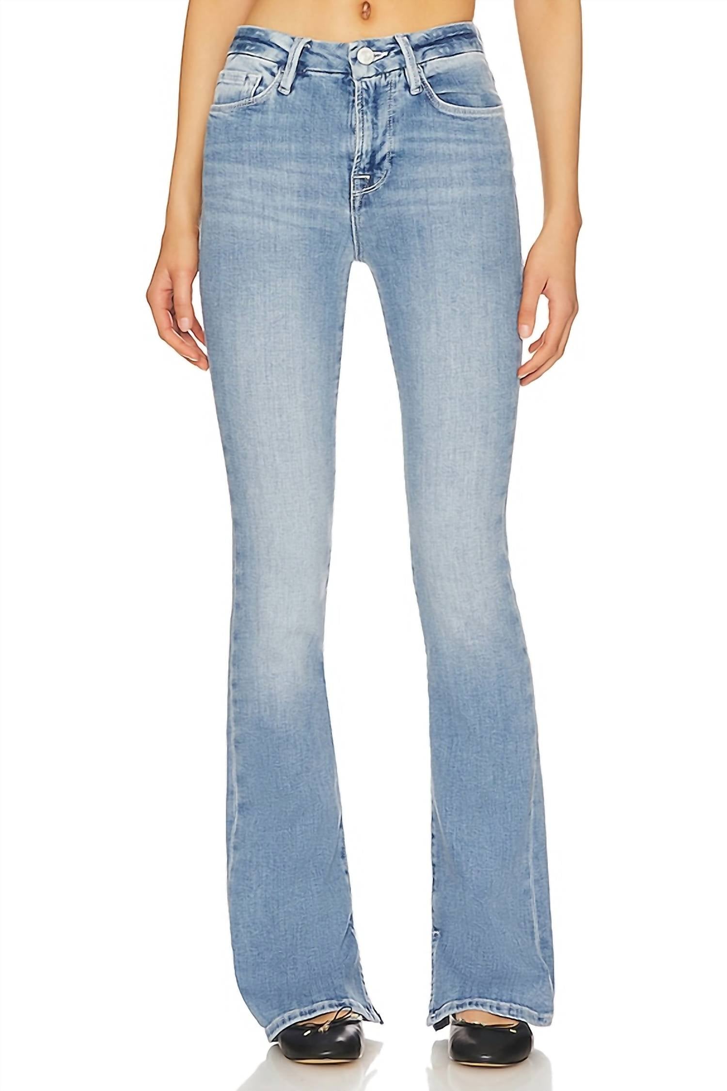 If you're looking for boot-cut, this is the jean for you. Introducing the Le Mini Boot Jean by FRAME, designed to deliver a chic, minimalist look in Galeston. These jeans feature a mid-rise waist with a 10-inch rise and a 33-inch inseam, perfect for creating a slender silhouette. Tailored from a 77% Cotton, 18.5% Modal, 3.5% Elastane, 1% Spandex blend, they boast a slim fit and a classic bootcut leg. With a button closure and practical pockets, they are machine washable for easy care, making them ideal for a stylish spring holiday party.