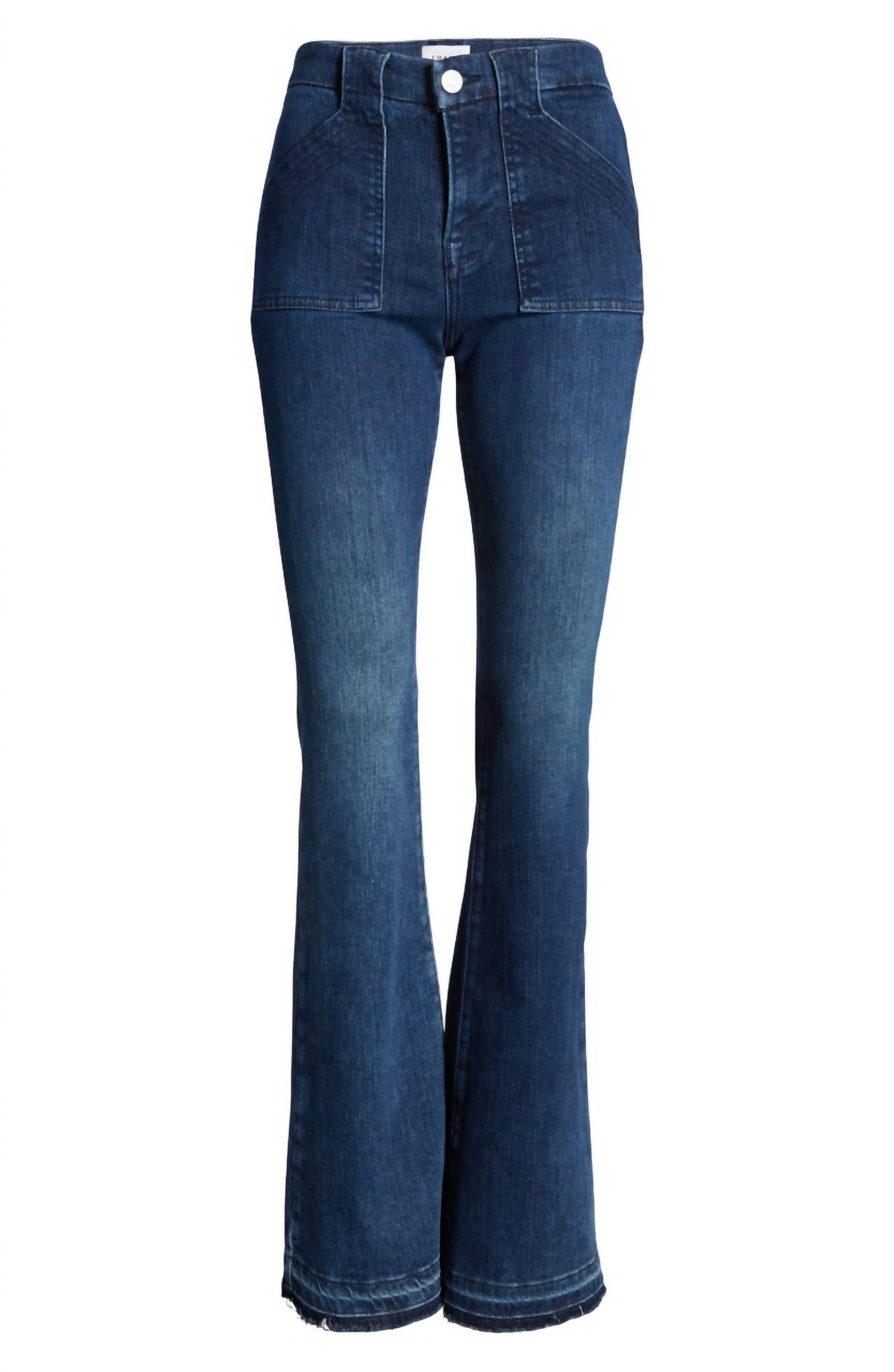 A flattering silhouette that's suprisingly versatile. Introducing the Trapunto St. Le High Flare Jean by FRAME, crafted for the modern woman in a stunning Aurora color. These jeans feature a high-rise slim fit with a 10.5-inch rise and a flared leg style, showcasing an inseam of 35 inches for a flattering silhouette. Made from a soft 77% Cotton, 19% Modal, 3% Elasterell-p, 1% Elastane blend, they offer both style and comfort, with convenient pockets and a secure button closure. Care is simple with machine wash and lay flat to dry instructions, making these jeans your go-to choice for holiday parties and spring events.