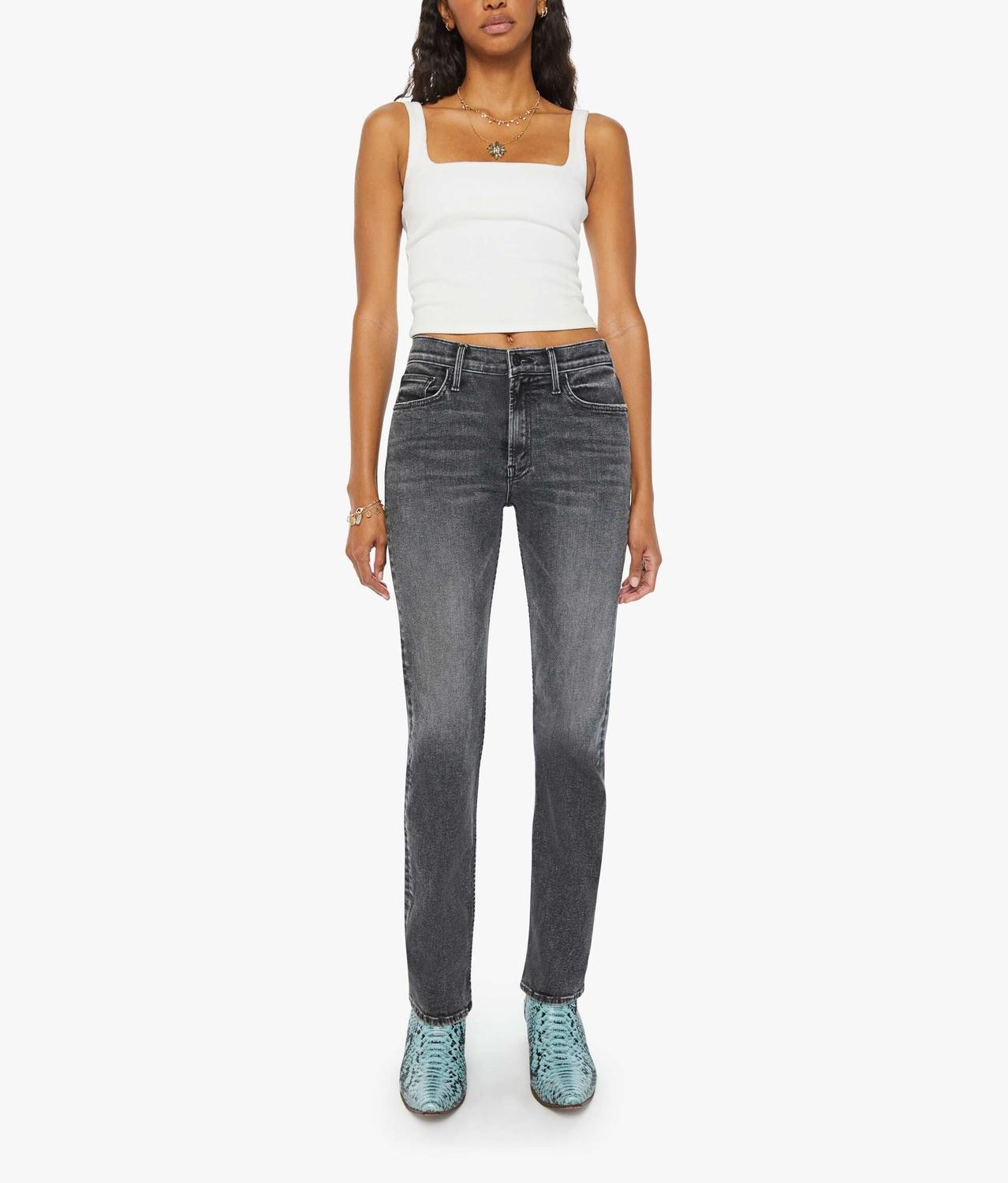 Pair these straight leg jeans with flats, sandals or even heels! You can't go wrong. Meet the Mid Rise Rider Skimp Jeans by Mother, a stylish piece for your wardrobe in the unique I Hate Snakes faded dark grey. Featuring a mid-rise fit with a 10-inch waist rise, these straight-leg jeans boast a 31-inch inseam and a 14-inch leg opening. Crafted from a cotton blend of 92% cotton, 4% elastane, and 4% polyester, these jeans offer comfort with a touch of stretch. The button closure ensures a snug fit, while care is easy with machine wash and low tumble dry instructions.