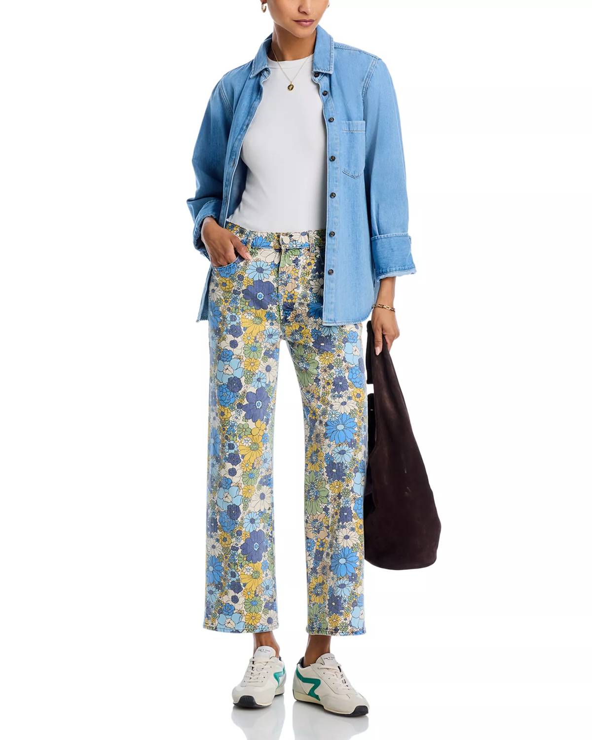 These must-have jeans are fit to perfection. The Rambler Zip Ankle Jeans by Mother are a chic addition to any wardrobe, tailored for a sleek streetwear look. These high-waisted pants feature a wide straight leg, zip fly, and a clean ankle-length inseam with a 27.5" length. Crafted from Cotton in an off-white Cream Puffs hue, they offer comfort and style with a button closure and functional pockets. Perfect for travel, care for these jeans with a simple machine wash.