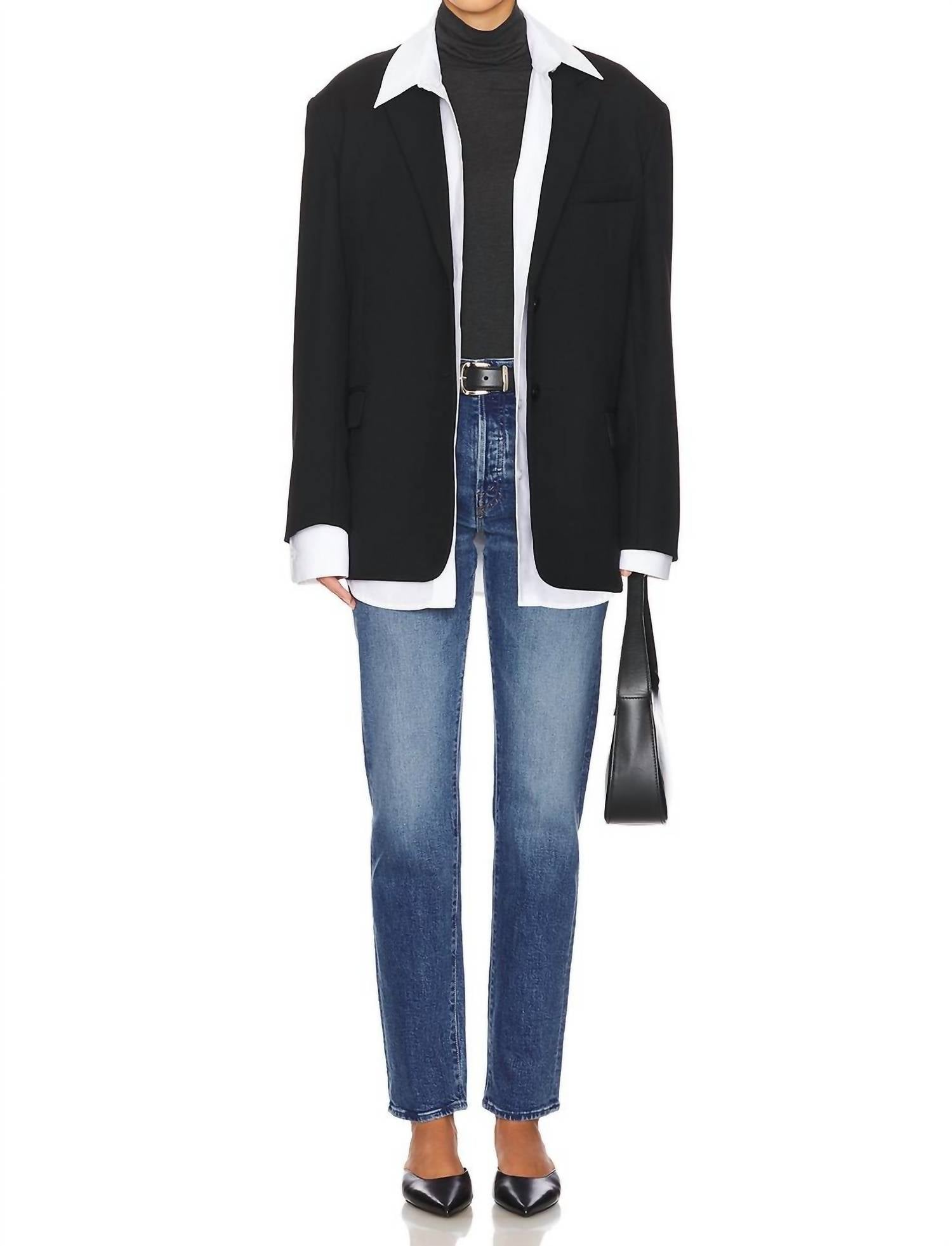This classic straight leg jean has a perfect fit and goes with just about everything. Discover the timeless appeal of The Hiker Skimp Straight Leg Jean by Mother, crafted from classic blue denim perfect for stylish travel and fall wear. These jeans feature a straight-leg silhouette with a mid-rise of 9.75" and an inseam of 31", ensuring a comfortable fit. Made in the USA from 98% cotton and 2% elastane, they include a button fly closure, five-pocket design, and contrast stitching for a vintage-inspired finish. To maintain their look, machine wash and lay flat to dry.