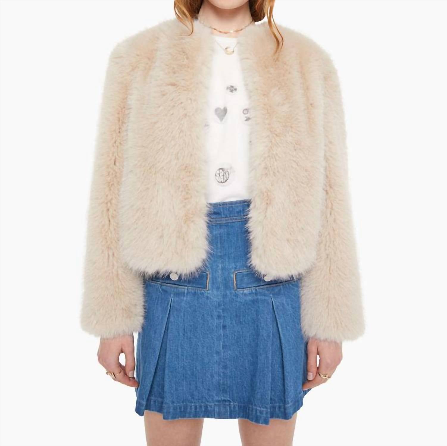 Throw this vest over an all black outfit for a perfectly polished look. A cropped jacket with a crewneck and boxy fit. Designed in soft faux-fur, Counter Culture is a creamy light pink. Imported. 100% Polyester.