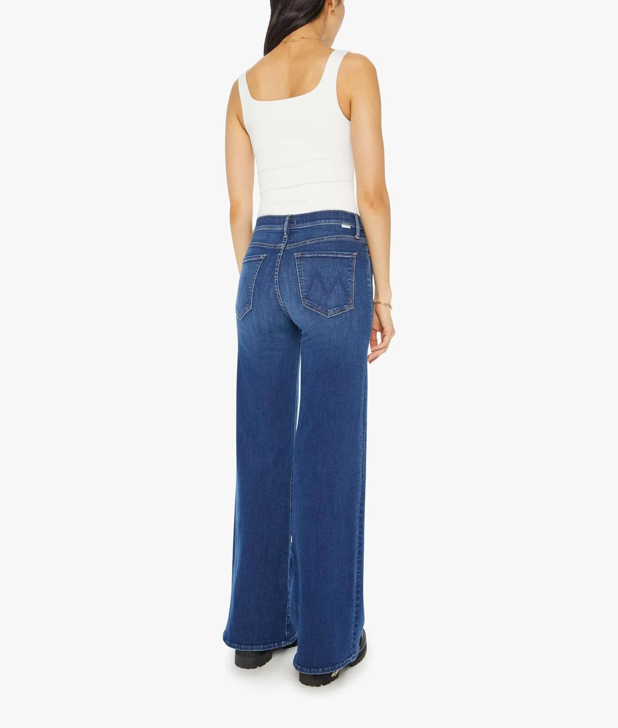 Tuck your favorite tee into these high-waist jeans for a more casual-cool feel. Introducing the Twister Sneak Jeans by Mother, designed for those who appreciate comfort and style in a versatile pair. These high-rise, wide-leg jeans boast a relaxed fit and an elegant mid-blue wash named "On Your Left," with chic whiskering and fading at the knees. Crafted from a cotton blend with 94% cotton, 5% polyester, and 1% elastane, these jeans are made in Los Angeles and offer a flattering 10" rise, a 32" inseam, and a generous 26.5" leg opening. Featuring a button closure and practical pockets, they're easy to care for with machine washable instructions.