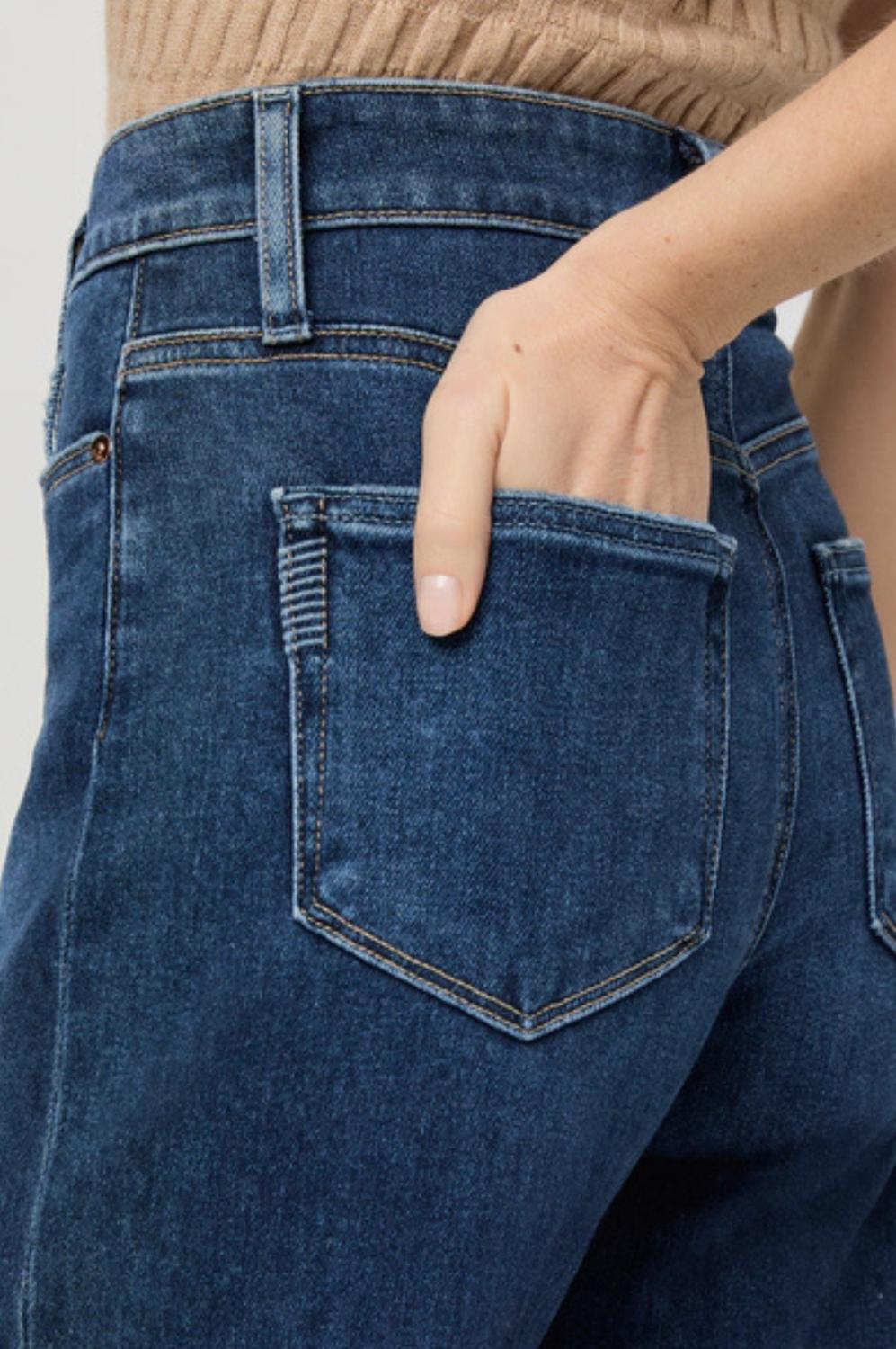 A flattering silhouette that's suprisingly versatile. Introducing the Anessa Wide Leg Jean by Paige, a stylish choice in the rich dark wash shade of Foreign Film. These high-rise jeans feature a relaxed fit with an ankle-length silhouette, offering a 27" inseam and a 22 1/2" leg opening. Expertly crafted from a cotton blend of 93% Cotton, 5% Polyester, and 2% Spandex, they promise comfort and a modern vintage character. Closure: Button. Ideal for vacation occasions and inspired by '90s fashion trends.
