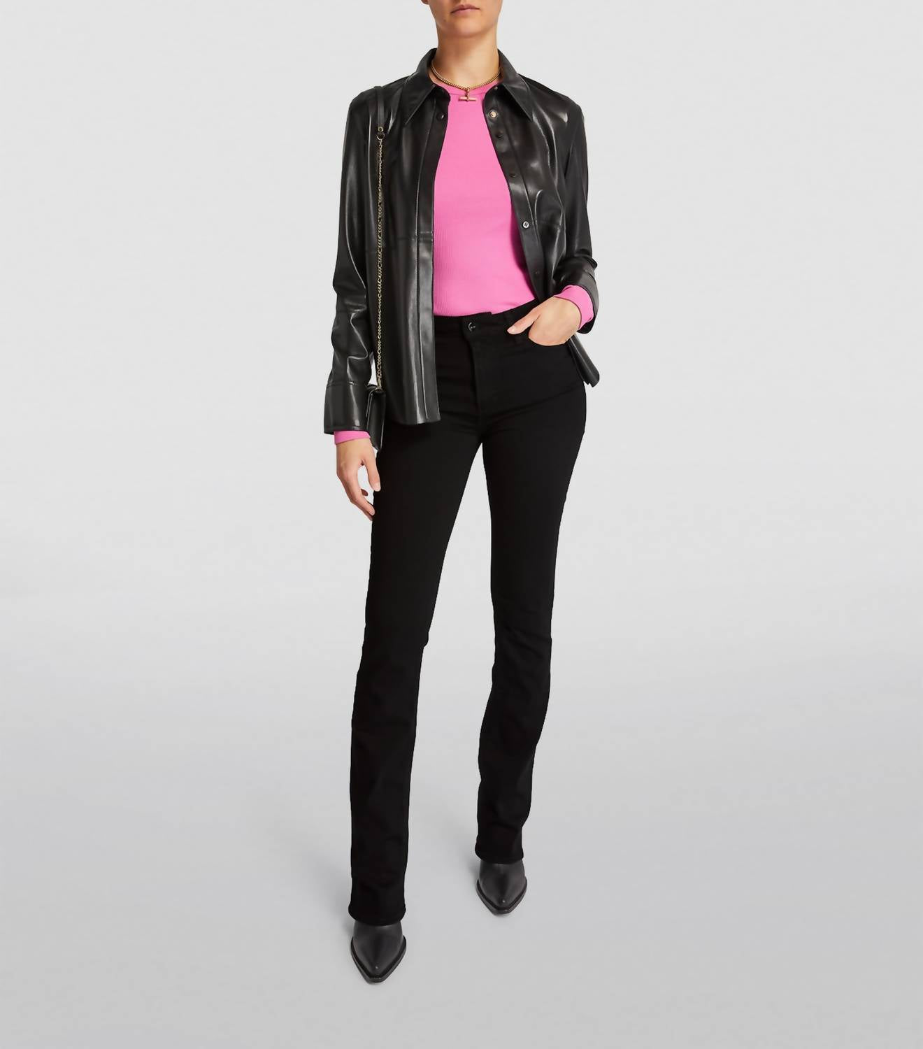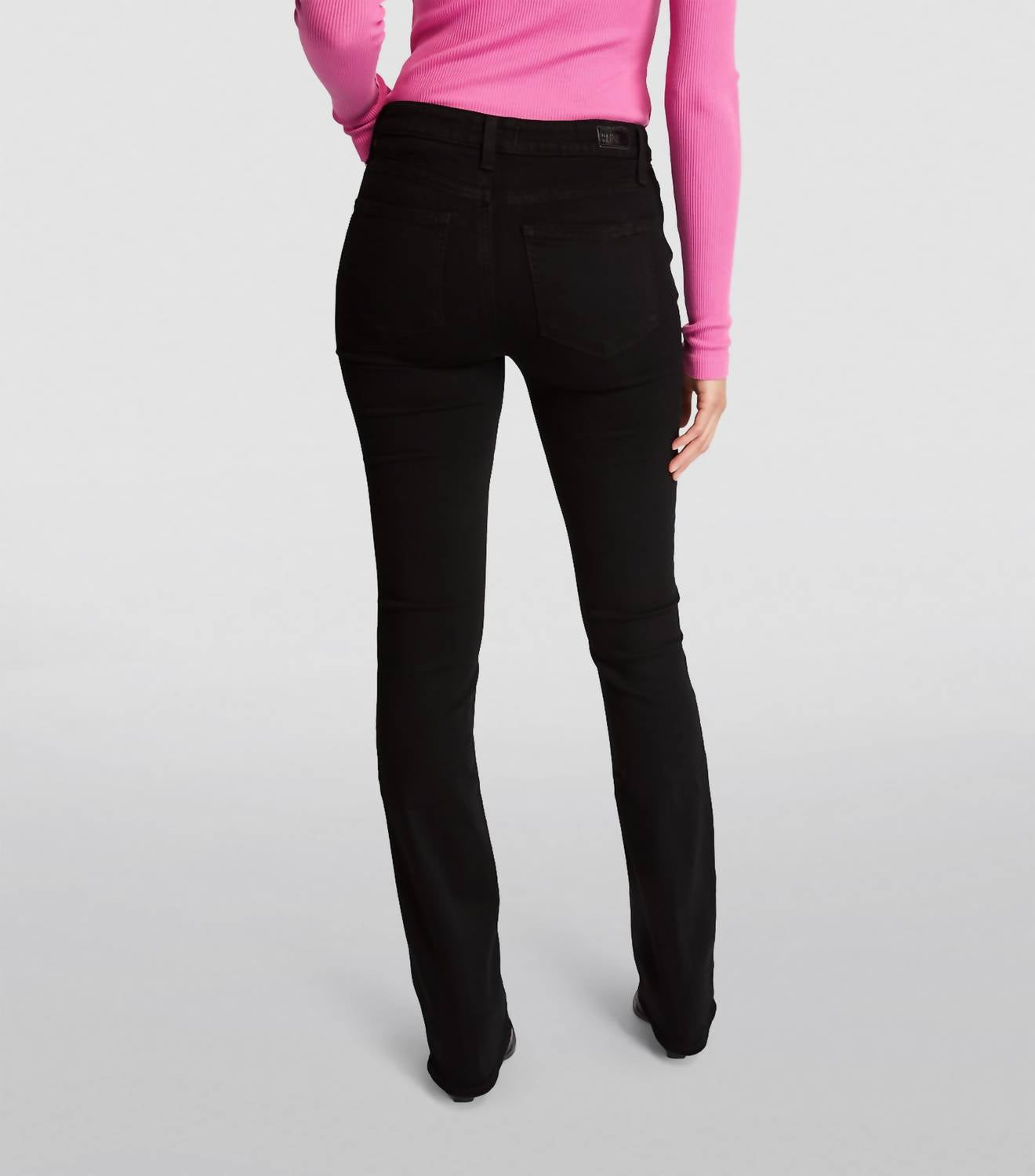 Just add boots! Meet the High Rise Manhattan Boot 34.5″ Jean by Paige, expertly crafted for a super slim fit with a high rise. This bootcut jean in a solid dark black wash offers luxurious comfort with its TRANSCEND fabric that maintains its shape wear after wear. Composed of 54% rayon, 23% cotton, 22% polyester, and 1% spandex, it features a zip closure and convenient pockets. Care instructions include machine washing and tumble drying. Dimension details: Front rise 9″, inseam 34 1/2″, leg opening 17 1/2″.