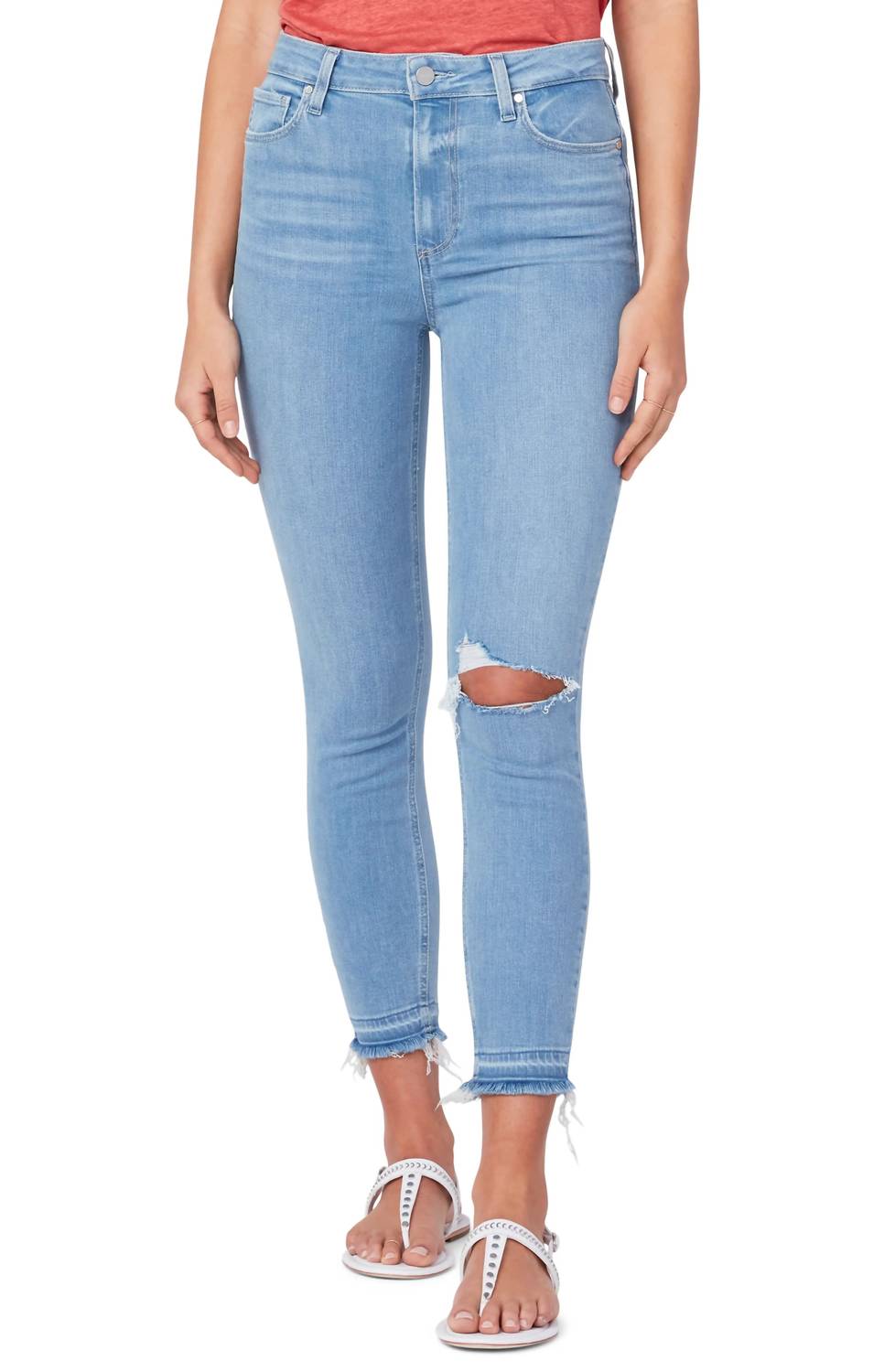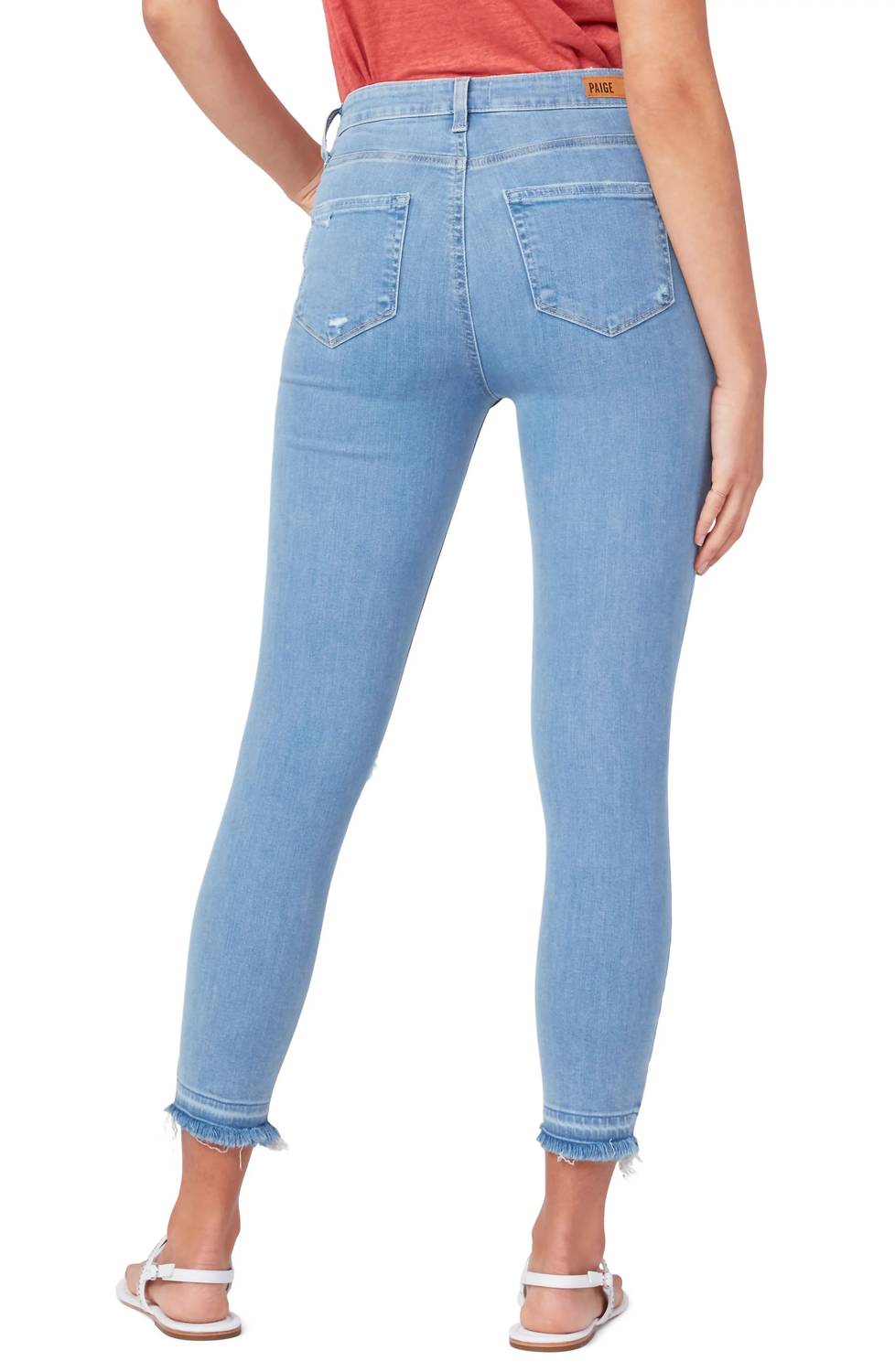 A skinny jean that is both flatering and comfortable. We love this style because it works great with boots, or without! Elevate your summer wardrobe with the Margot Ripped Crop Skinny Jean from Paige, the ideal choice for a chic vacation look. Crafted from a comfortable cotton blend, these high-rise, slim-fit jeans feature a skinny leg that complements any silhouette. Designed in a trendy 90s fashion, they come with practical pockets and a secure button closure. For easy care, machine wash and line dry.
