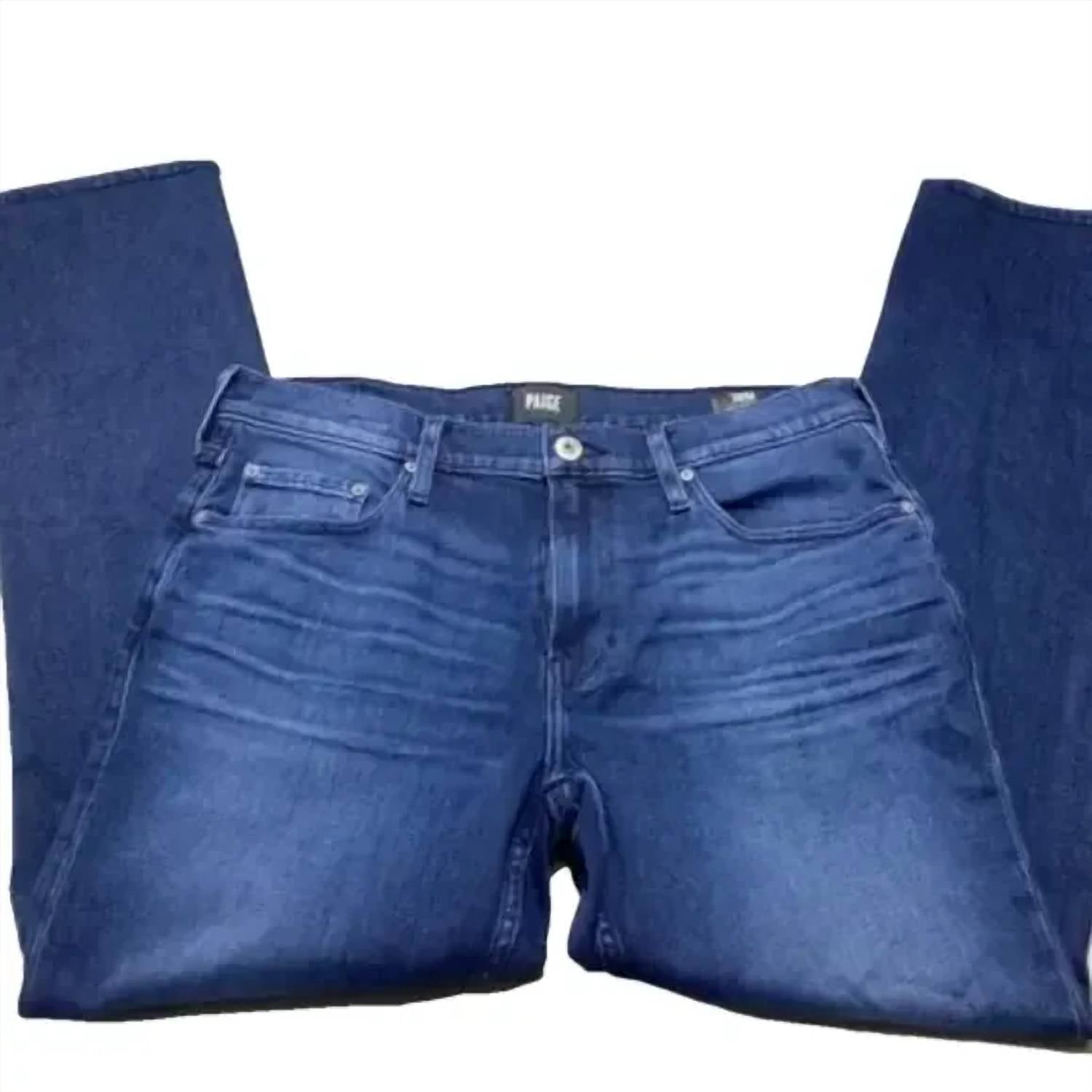 Discover the Men’s Lennox Skinny Jeans from Paige, a stylish essential in a rich dark blue hue perfect for your fall travels. Crafted in Mexico, these skinny jeans feature soft, high-recovery stretch denim with a composition of 93% cotton, 5% polyester, and 2% spandex. The impeccable design includes a zip fly with button closure and classic five-pocket styling. Enjoy easy maintenance with machine washable care instructions.