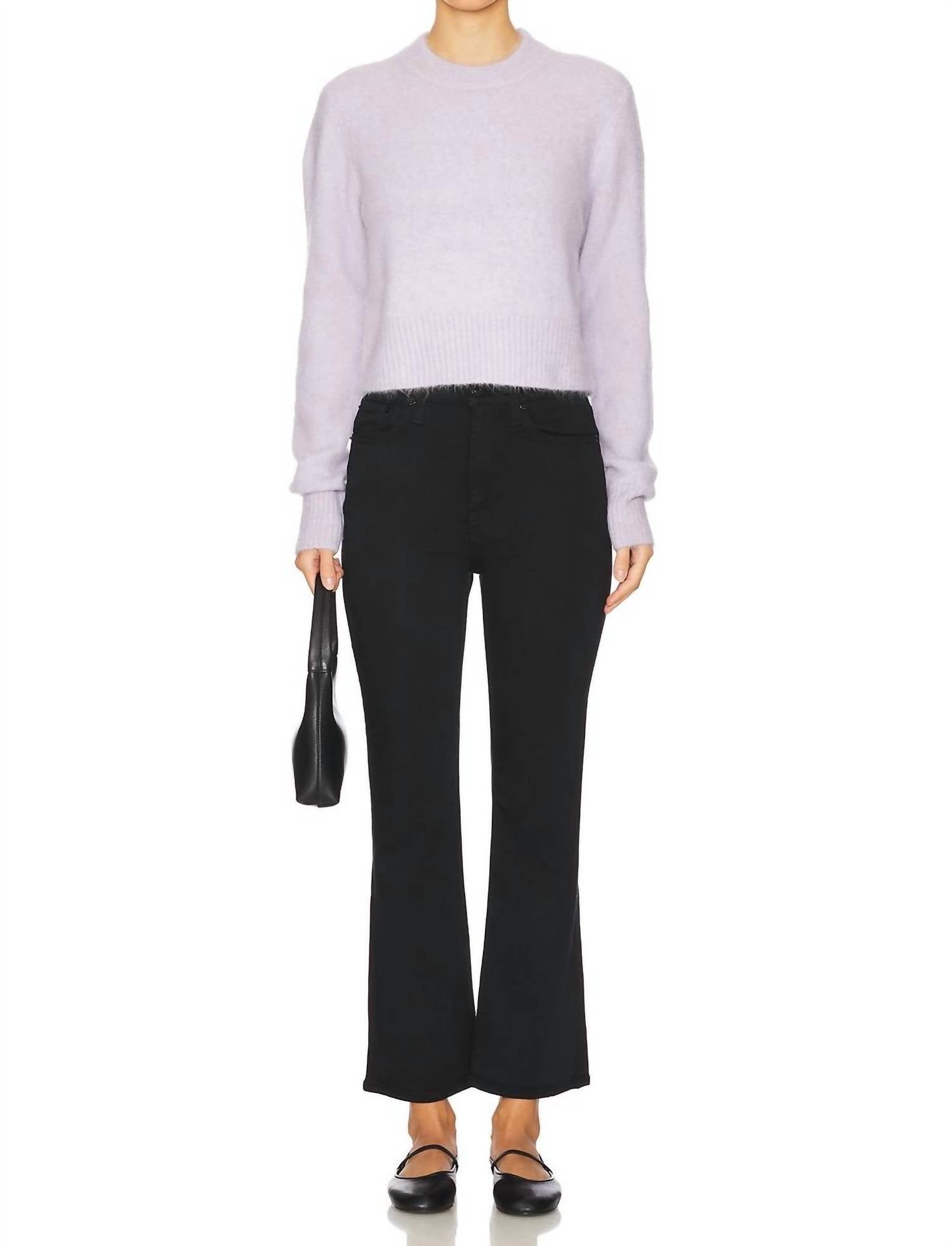 Comfortable and stylish, we love this cropped jean for all of the obvious reasons. Introducing the Lennon High Rise Crop Boot Jeans by PISTOLA, a timeless addition to your wardrobe crafted in Noir. These women’s jeans feature a high rise with an 11” rise measurement and a regular fit, transitioning into a classic bootcut leg. Made from a durable cotton blend of 98% Cotton and 2% Elastane, they boast a 27” cropped ankle length inseam and a 16 1/2” leg opening, offering both style and comfort. Designed with a button closure and functional pockets, these jeans are imported and can be machine washed, perfect for embracing the 90s fashion trend. Model is 5'9" and wearing size 26.