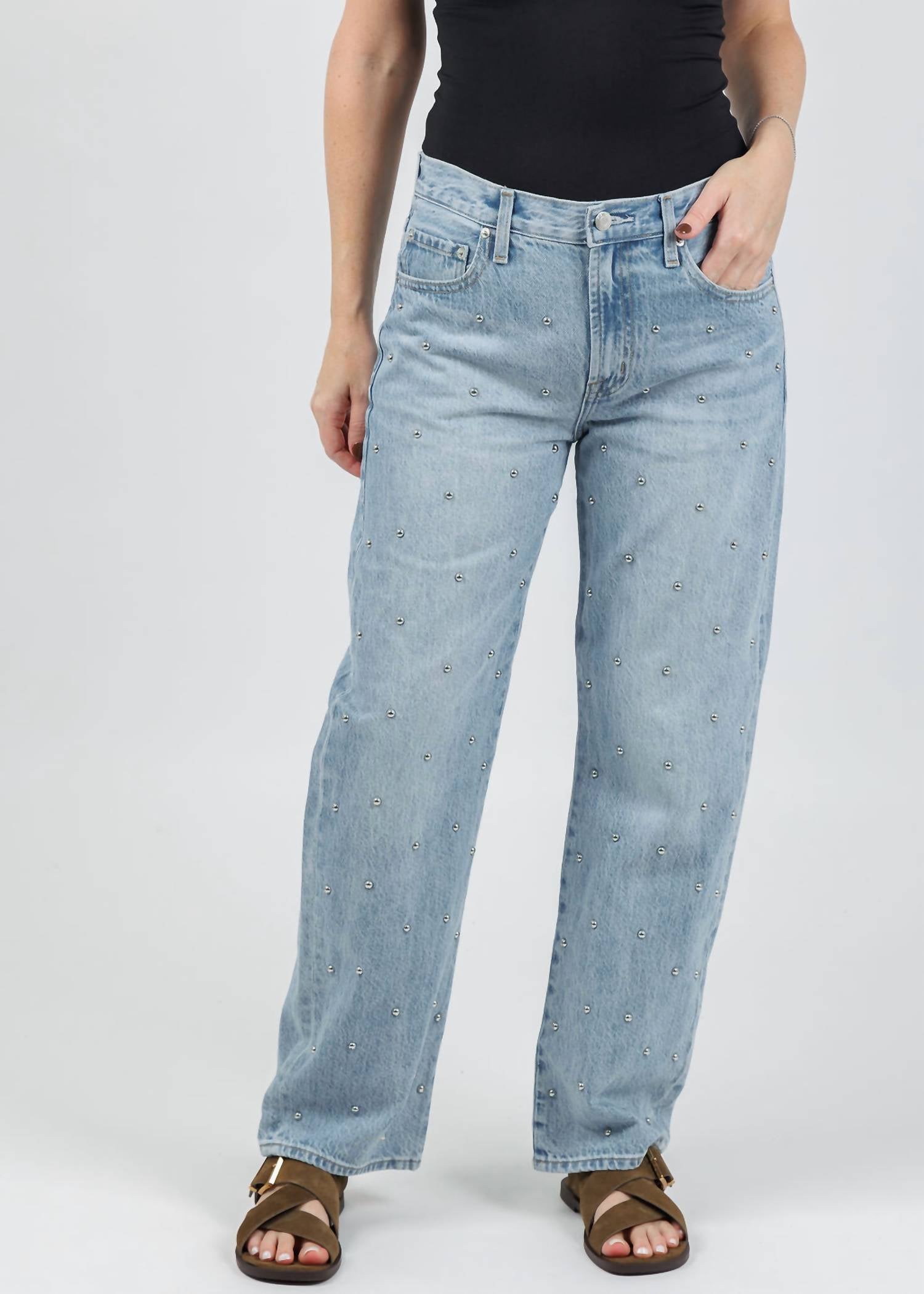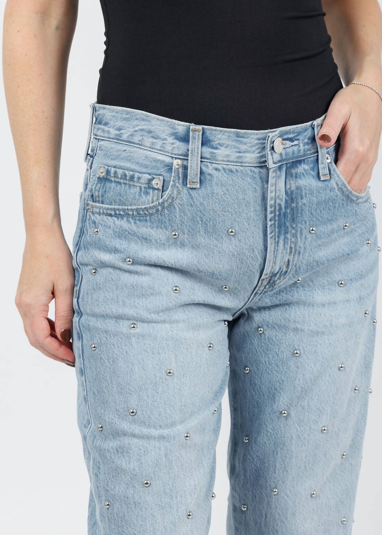 These must-have jeans are fit to perfection. Introducing the PISTOLA Lexi Mid Rise Bowed Straight Jeans in Aries, crafted from 100% cotton for a comfortable and stylish fit. These jeans feature a flattering mid-rise waist and a unique bowed leg silhouette that enhances your natural shape with a modern twist. The jeans come in a cropped ankle length with a clean hem, perfect for showcasing your favorite footwear, and include a zip fly with button closure for secure wear. Designed with a 10" rise, 29" inseam, and 17.5" leg opening, the jeans incorporate a 5-pocket design and silver-tone studded accents at the front, making them ideal for a stylish and versatile wardrobe addition.