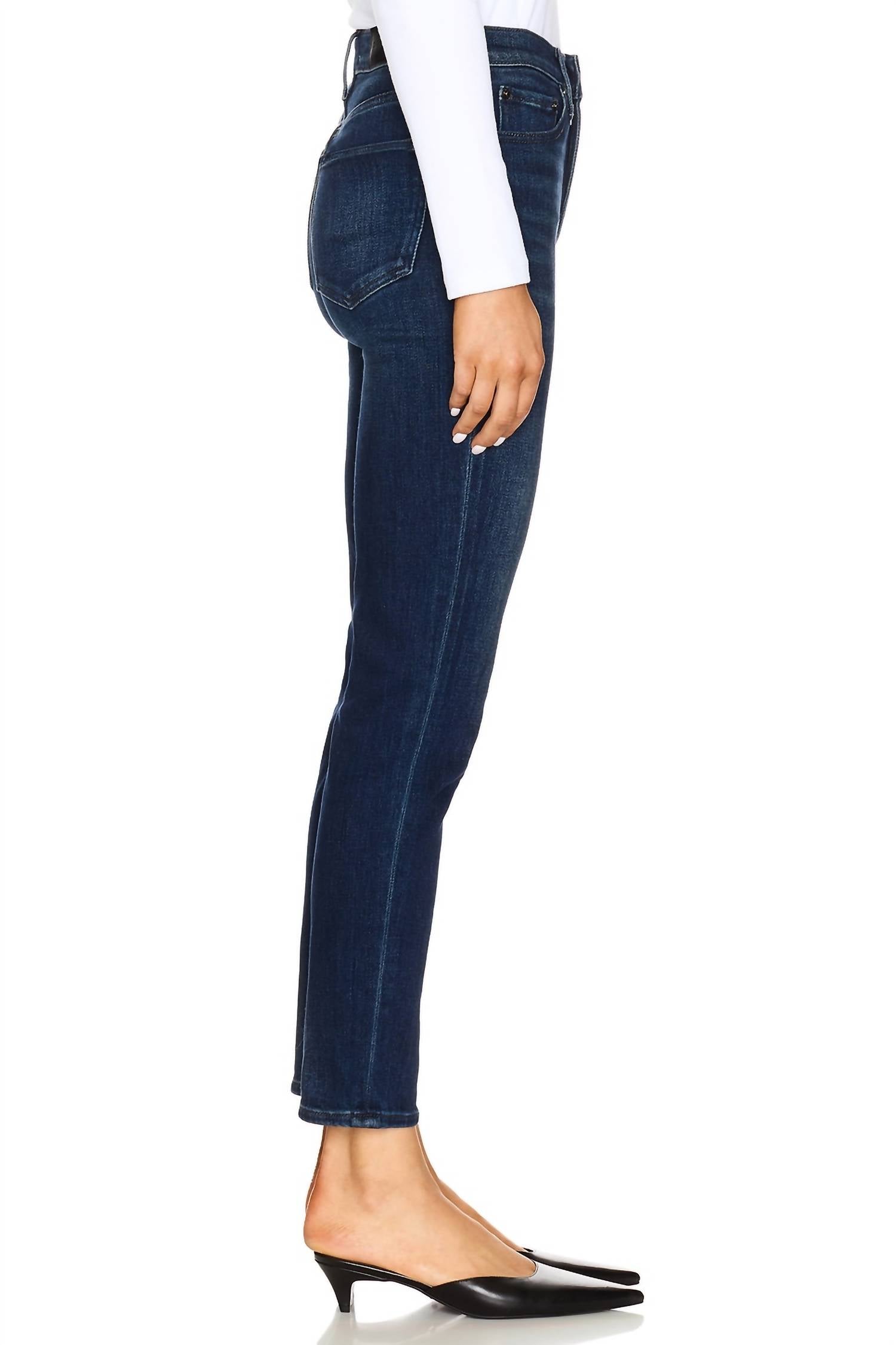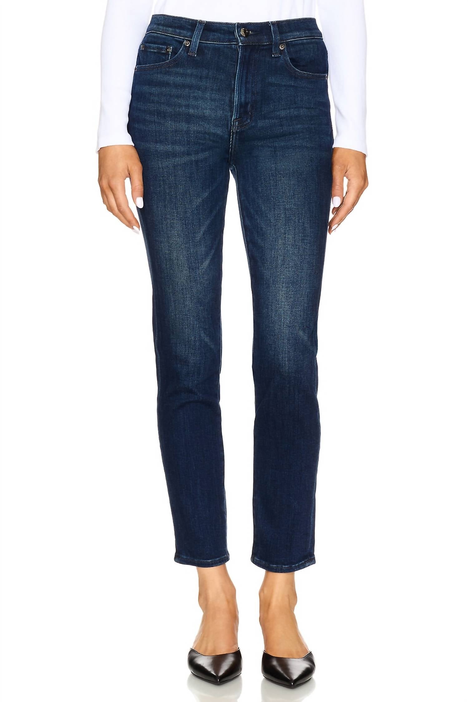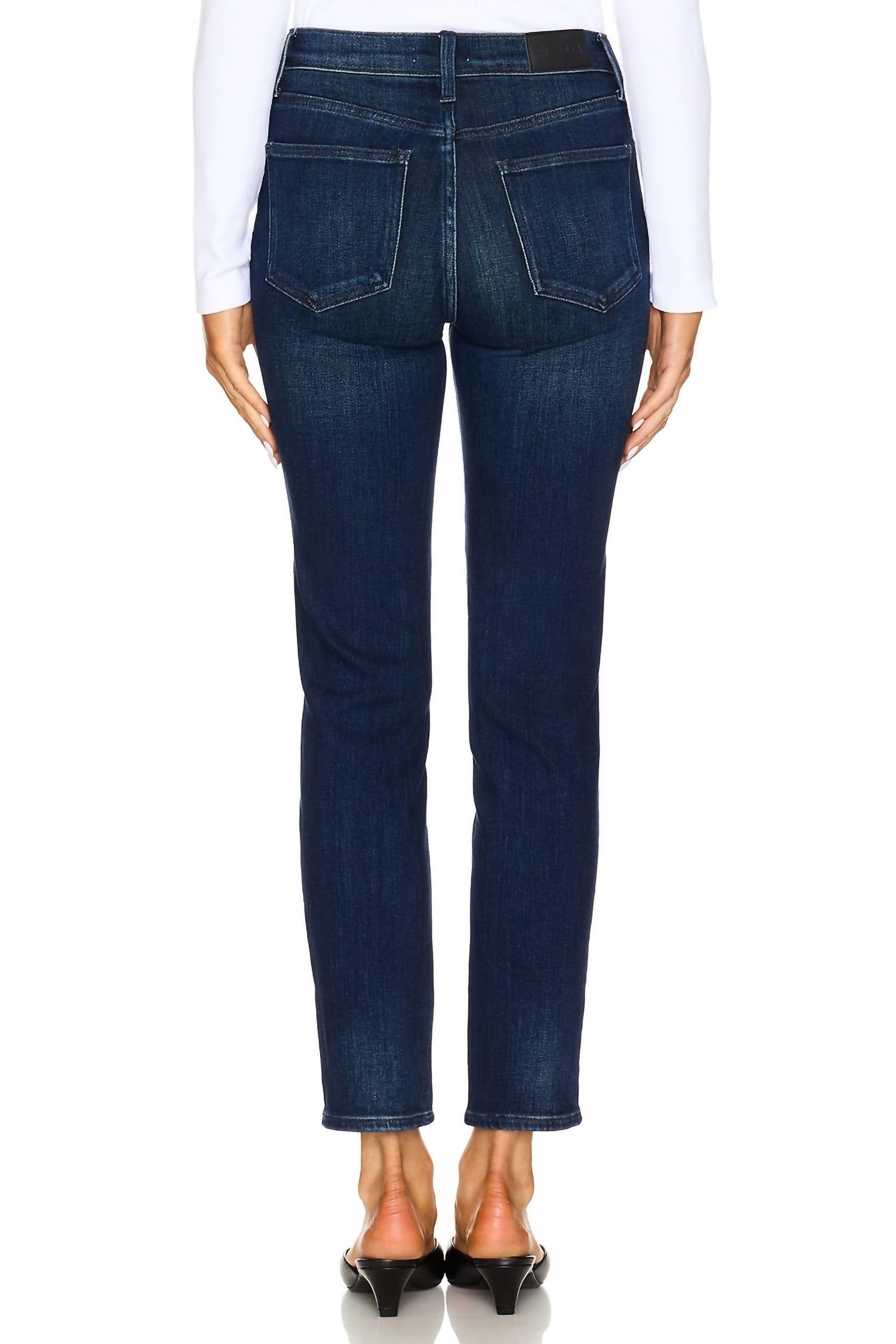 Everyone needs a good pair of skinny jeans and this is a style you'll keep reaching for no matter the season. Elevate your wardrobe with the Madi Ankle Straight Leg Skinny Jeans by Pistola, offering a chic blend of vintage and modern vibes. These women’s jeans feature a high-rise waist and slim fit, crafted from a comfortable cotton blend with just the right amount of stretch. With a 27" inseam and a 13" leg opening, they are designed to flatter in a solid dark wash that's perfect for spring and travel occasions. Expertly finished with a button closure and machine washable for easy care, these imported jeans are an essential addition to your 90s fashion-inspired collection.