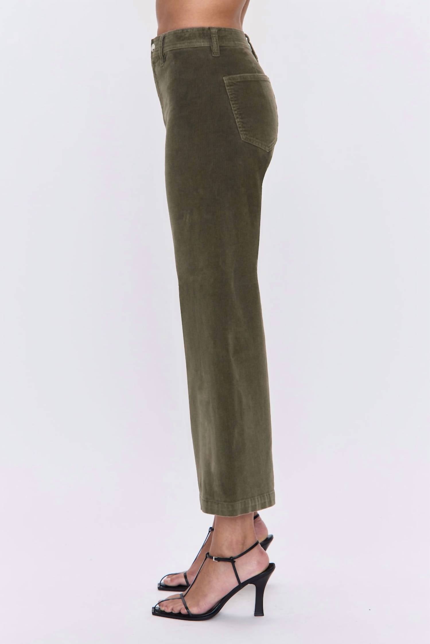 We especially love this cropped jean with a cute pair of slides or sandals. Introducing the Penny Cropped High-rise Corduroy Pants by PISTOLA, a playful blend of style and comfort in a chic Sequoia hue. Crafted from a soft cotton blend, these ankle-length pants feature a regular fit with a wide-leg silhouette and a flattering high-rise of 11.5 inches. The solid pattern and button closure add a minimalist touch that's perfect for the fall season. Designed with practicality in mind, they include pockets and are machine washable, making them an ideal choice for your back-to-school wardrobe.