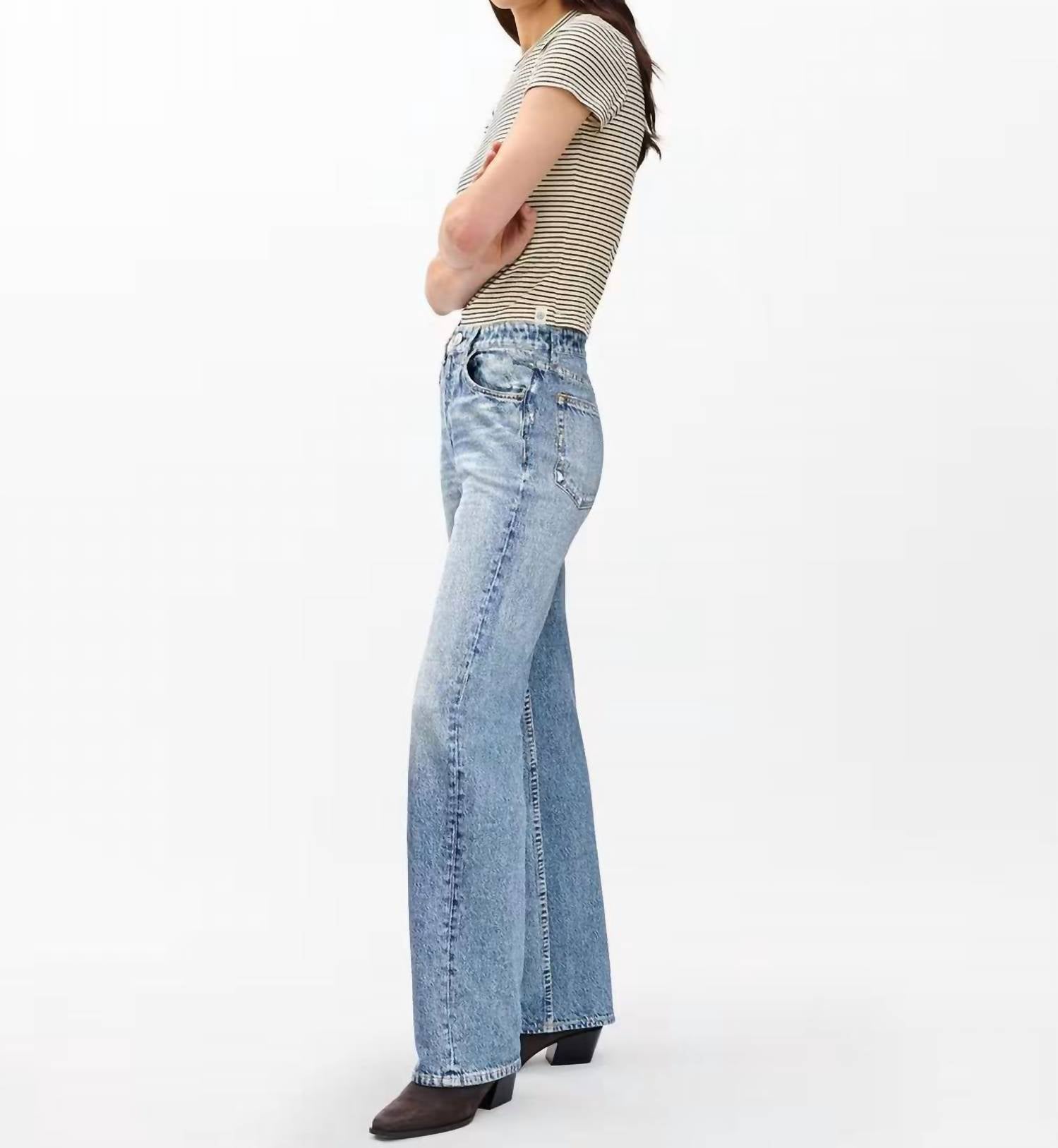 This classic straight leg jean has a perfect fit and goes with just about everything. Elevate your casual wardrobe with the Miramar Shea Straight Pants by Rag & Bone, tailored for a relaxed fit and crafted from soft cotton terry cloth. These pants feature a straight leg design with a high-rise waist, complemented by functional belt loops, front scoop pockets, and a zip fly with a button closure. They showcase an innovative Miramar printing technique that simulates the look of denim in a solid light wash Tessa color, making them perfect for your workwear or vacation wardrobe. For easy care, machine wash and tumble dry these versatile spring must-haves.