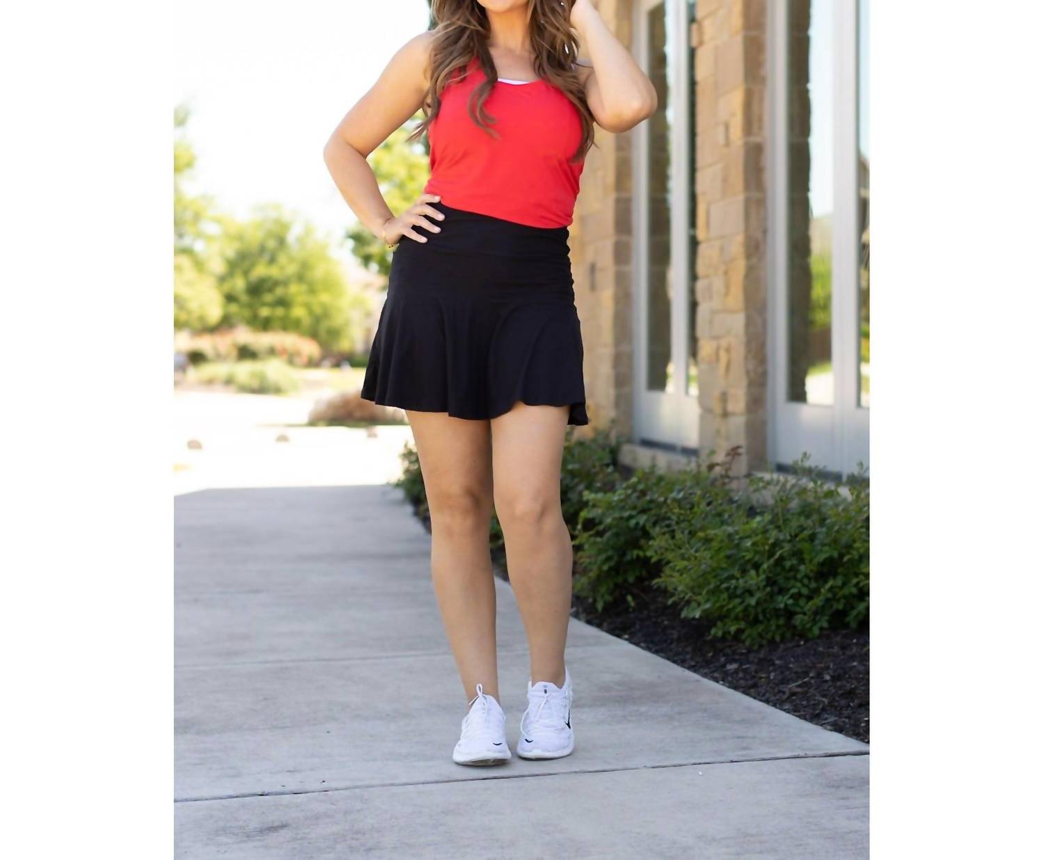 The go-anywhere and do-anything skort that you'll love to live in. Enhance your wardrobe with the Brielle Skort by Julia Rose, an exquisite blend of style and function in solid black. This pull-on skort features a chic, streetwear-inspired design perfect for travel, crafted from 92% polyester and 8% spandex. With a 16-inch length, it offers effortless comfort for a variety of occasions. Care for your skort by machine washing and line drying to maintain its quality and fit.