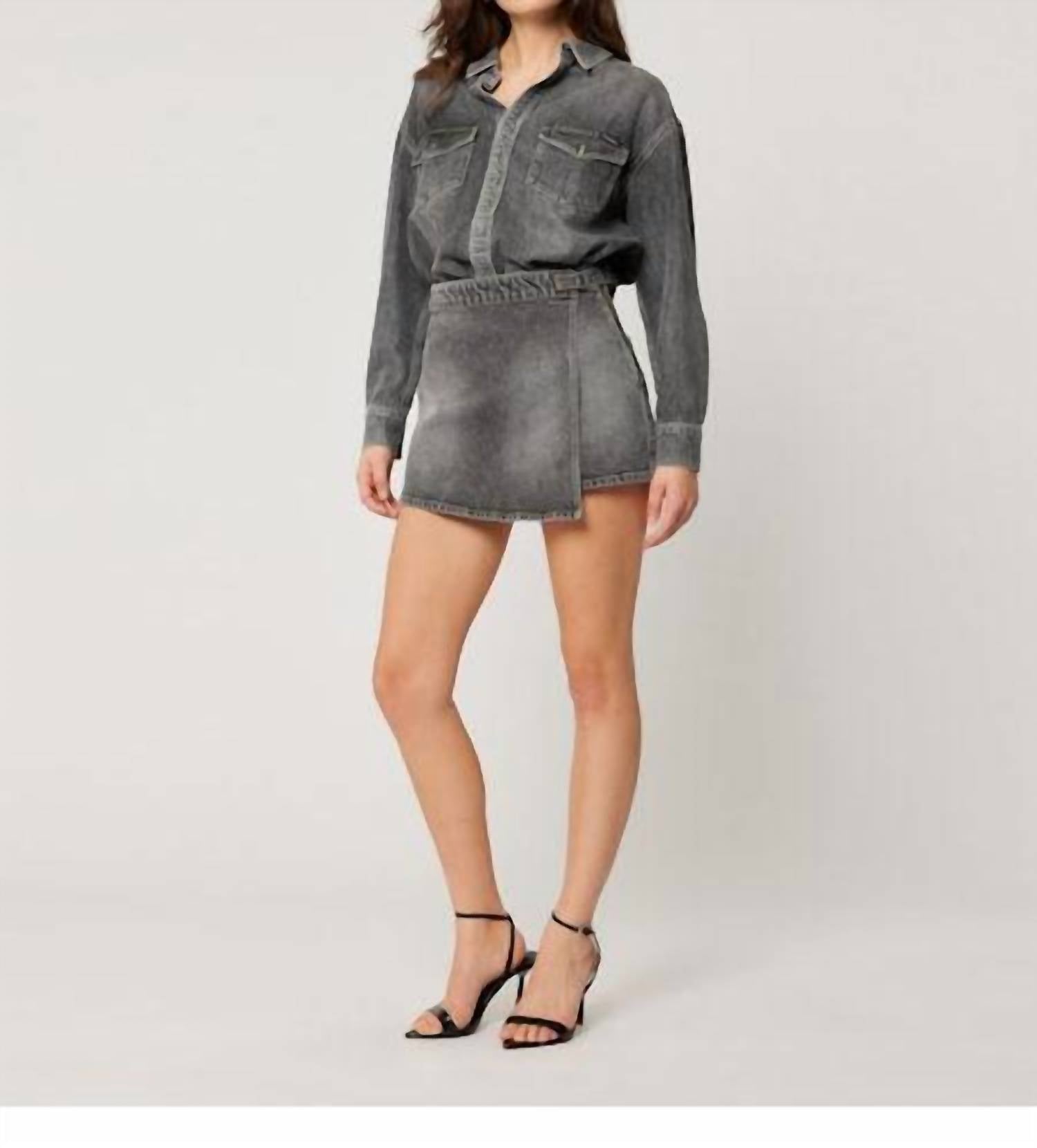 A skirt that you can do just about anything in? We love a good skort, especially this one! Embrace a chic streetwear vibe with the Dark Denim Skort by ROLLA'S, designed in a solid washed black stone color. This women's high-rise piece features Rolla’s signature back pocket stitching and trims, along with a zip closure for a relaxed fit. Made from 100% cotton, the non-stretch denim ensures a true vintage look that will soften and shape to your body. Dimension highlights include a waist of 68cm (27 inches), hip of 100cm (39 inches), inleg of 9cm (3.5 inches), and a front length of 33.5cm (13 inches). Care: Machine wash, tumble dry.