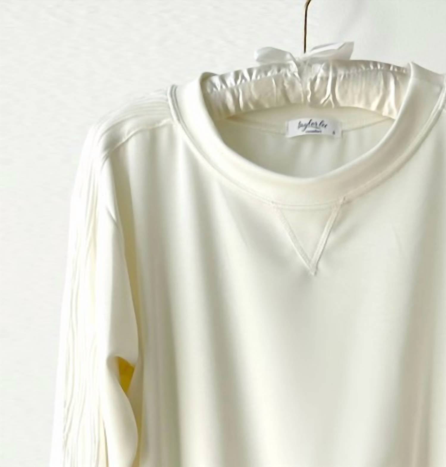 A match made in heaven. This two-piece set is so cute, you'll wish you could wear it out of the house! Did we mention how comfortable it is, too? You may want two sets! The Women's Lounge Set by Ariella in Cloud Ivory is designed for supreme comfort and style. This loungewear set showcases long sleeves with a delightful contrast detail, perfect for a relaxed and easygoing vibe. Made in the USA, its solid pattern and scoopneck make it a trendy pick for summer housewarming gatherings. Available in sizes Small, Medium, and Large, this set is a nod to the Quiet Luxury trend.