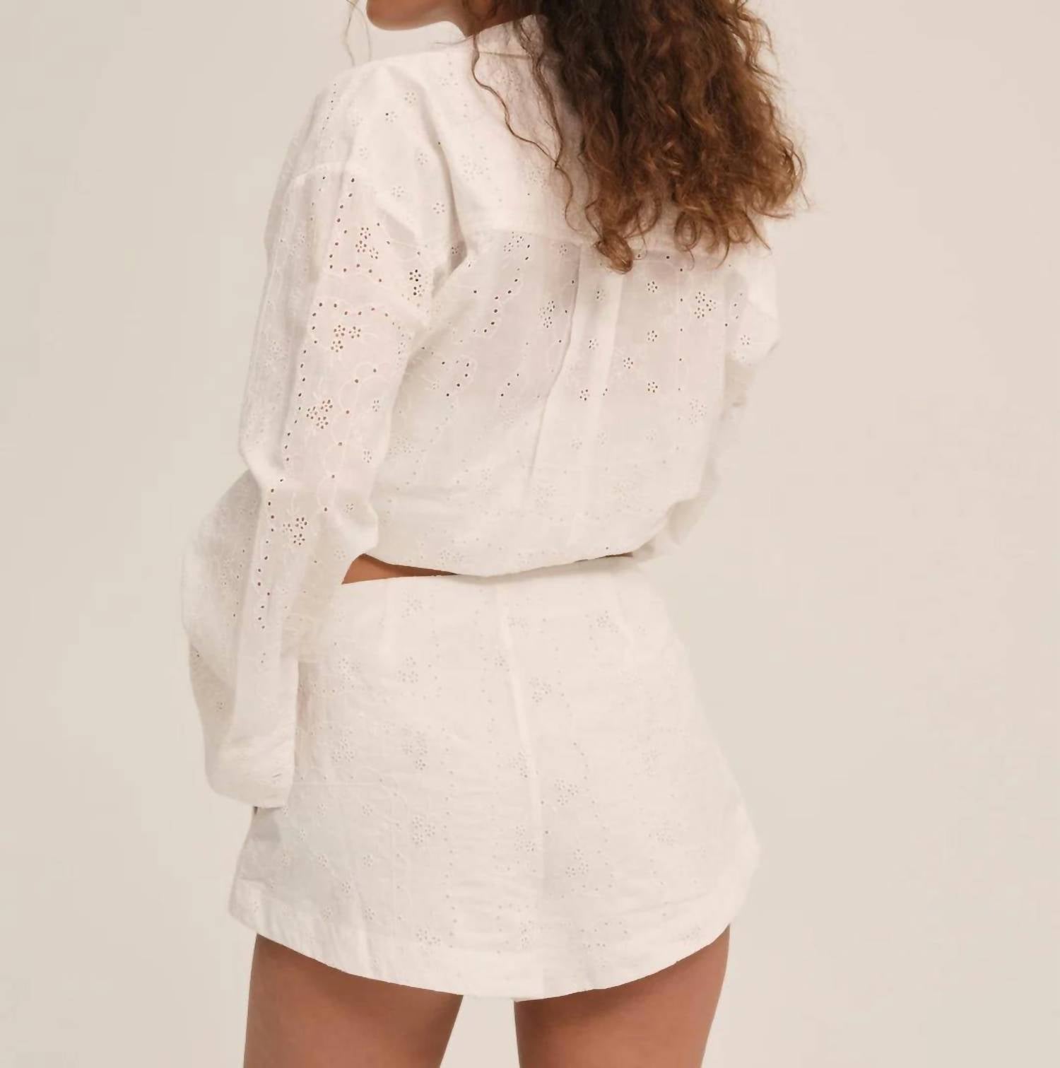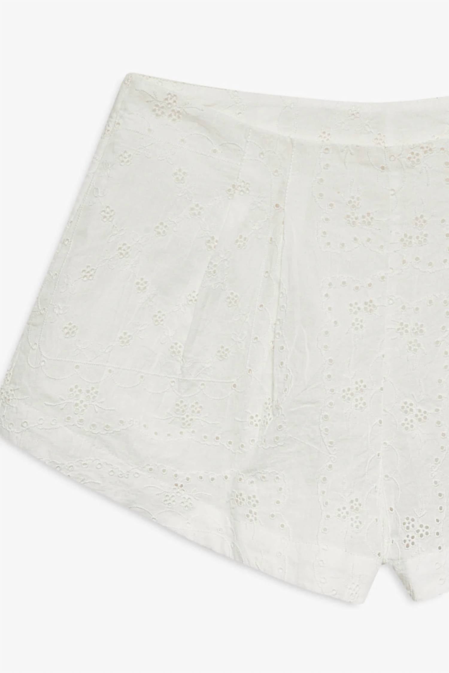 The cutest skort that combines style and functionality. Introducing the Eyelet Mini Short by Lil Lemons By For Love and Lemons, a stylish addition to your spring wardrobe in Handkerchief White. Crafted from breathable cotton, these patterned women's skorts feature functional on-seam pockets and a side zipper closure for ease of wear. Perfect for vacations or a Thanksgiving gathering, these shorts can be elegantly paired with the Handkerchief Button-Up Shirt for a complete co-ord look. Care instructions: machine wash and lay flat to dry.
