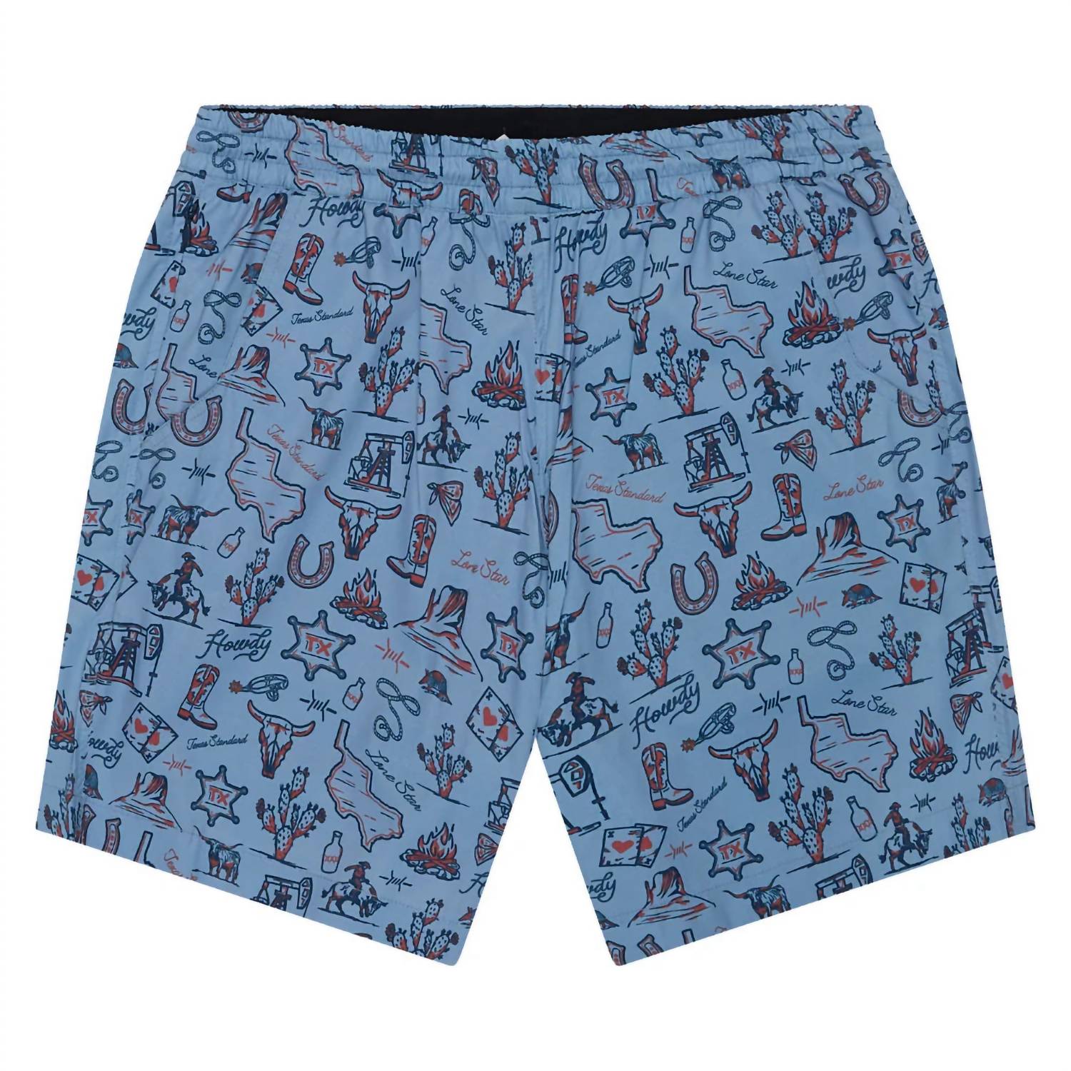 Dive into summer style with the Outlaw Swim Shorts by Texas Standard, featuring an all-over Western print that exudes the spirit of Texas. These swim shorts are crafted with a blend of 95% polyester and 5% spandex, complemented by a 7.5" inseam for optimal comfort and fit. Designed with an elastic waistband and drawstring for adjustable comfort, plus practical details including a mesh liner, two side pockets, and a back pocket with a Velcro closure. Care is simple with machine wash cold instructions and low tumble dry compatibility, making them a practical choice for any sunny beach day or poolside lounging.