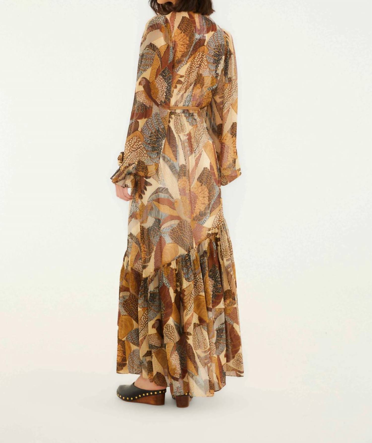 A maxi dress that is just as cute as it is comfortable. Embrace vibrant style with the FARM RIO Long Sleeves Maxi Dress in Dotted Macaws Cream, perfect for vacation or any maximalist occasion. This maxi dress features long sleeves, an A-line silhouette, and a V-neck, crafted from 100% viscose with a deliciously soft 100% modal lining. Closure: Back zip closure, ensuring a seamless fit. Care: Dry clean only.