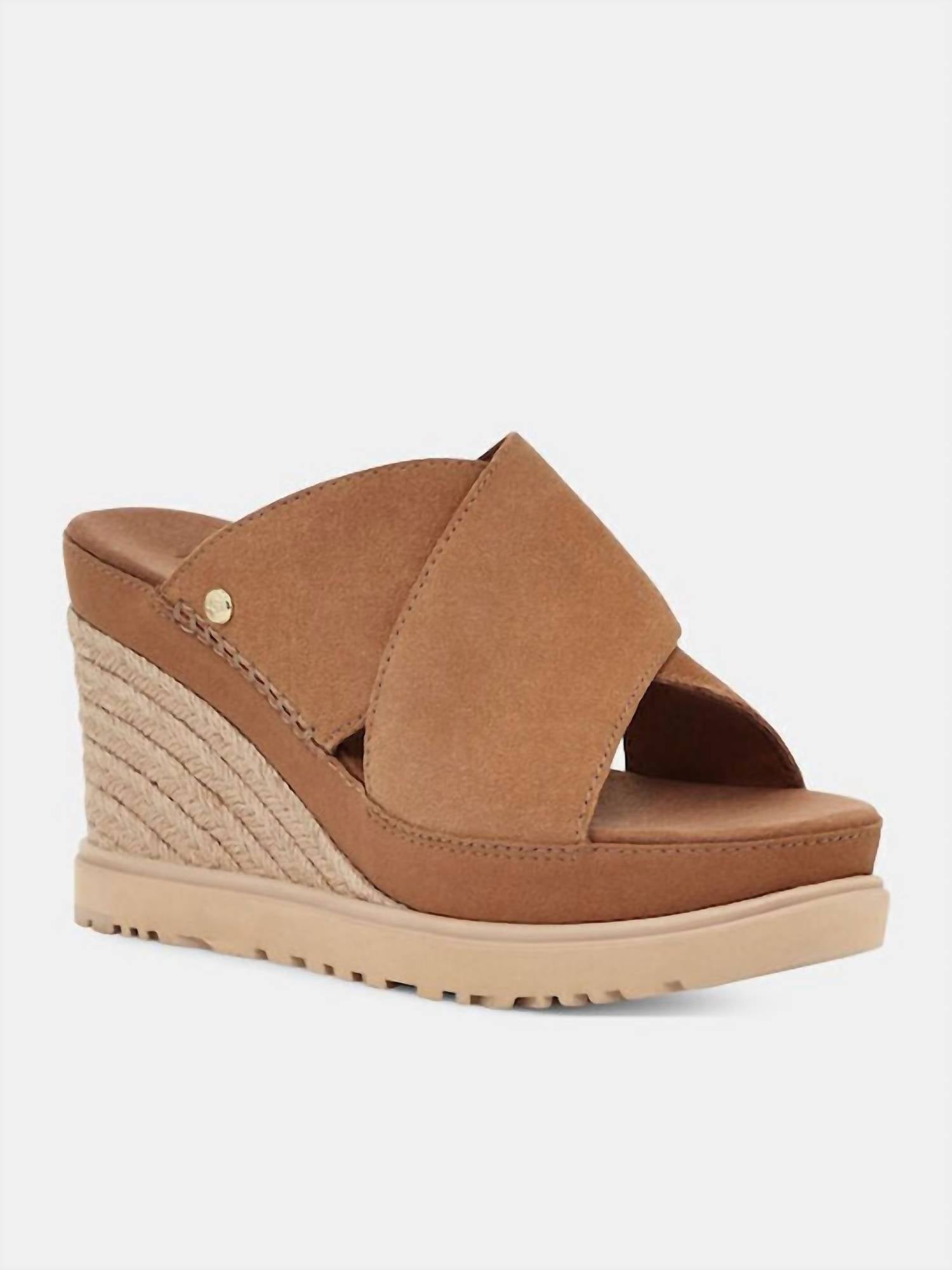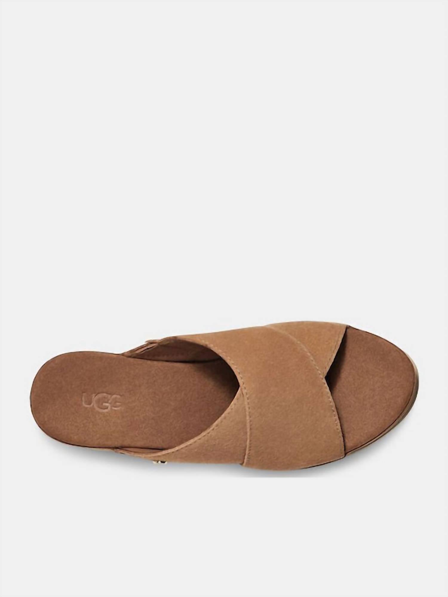 Timeless wedges that will be relevant season after season. Step into effortless summer style with the Women's Abbot Slide by UGG, featuring an open toe design perfect for warm weather. Made for adult women, these chic wedges in chestnut add a touch of elegance to holiday parties. The wedge heel offers both height and stability. Elevate your summer wardrobe with these versatile slides.