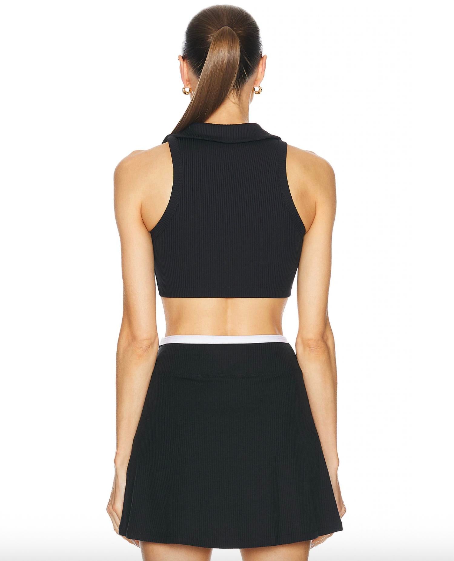 A sports bra that has it all - style, function and support. Pop your collar. This tailored bra tank has a preppy polo collar, cropped length, and V-neck so you can relive your best Y2K memories. Mid impact V-neck Tailored collar 85% Nylon, 15% Spandex Active Rib Machine wash cold, lay flat to dry Made in the USA
