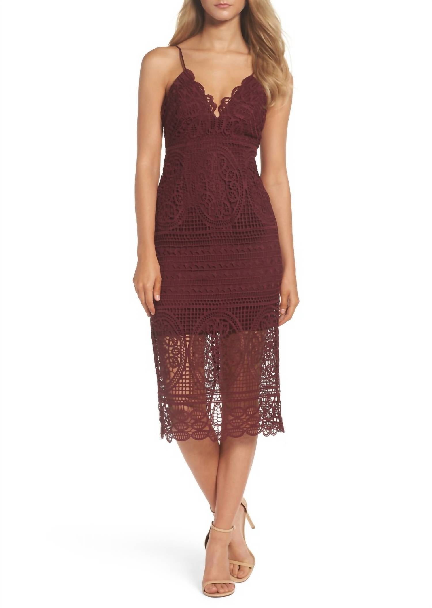 Bardot - Cocktail V Neck Crochet Lace Strappy Midi Dress