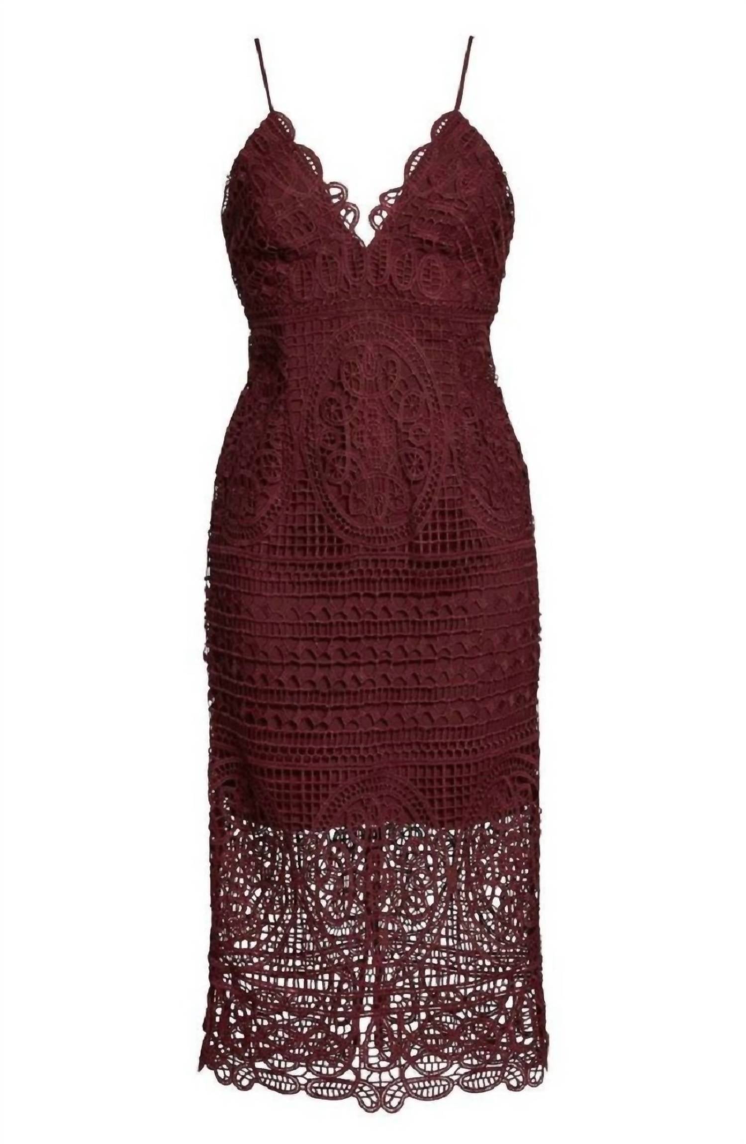 The perfect length dress does exist. Introducing the BARDOT Versailles Cocktail Midi Dress, a perfect blend of elegance and allure in a rich burgundy hue. This sleeveless sheath dress is made from 100% polyester, ensuring a flattering fit with a plunging V-neckline and adjustable straps. Featuring an exposed back-zip closure, it boasts a chic 32" length that accentuates your figure while offering a sophisticated textured pattern. For care, opt to dry clean or hand wash and dry flat for long-lasting wear.