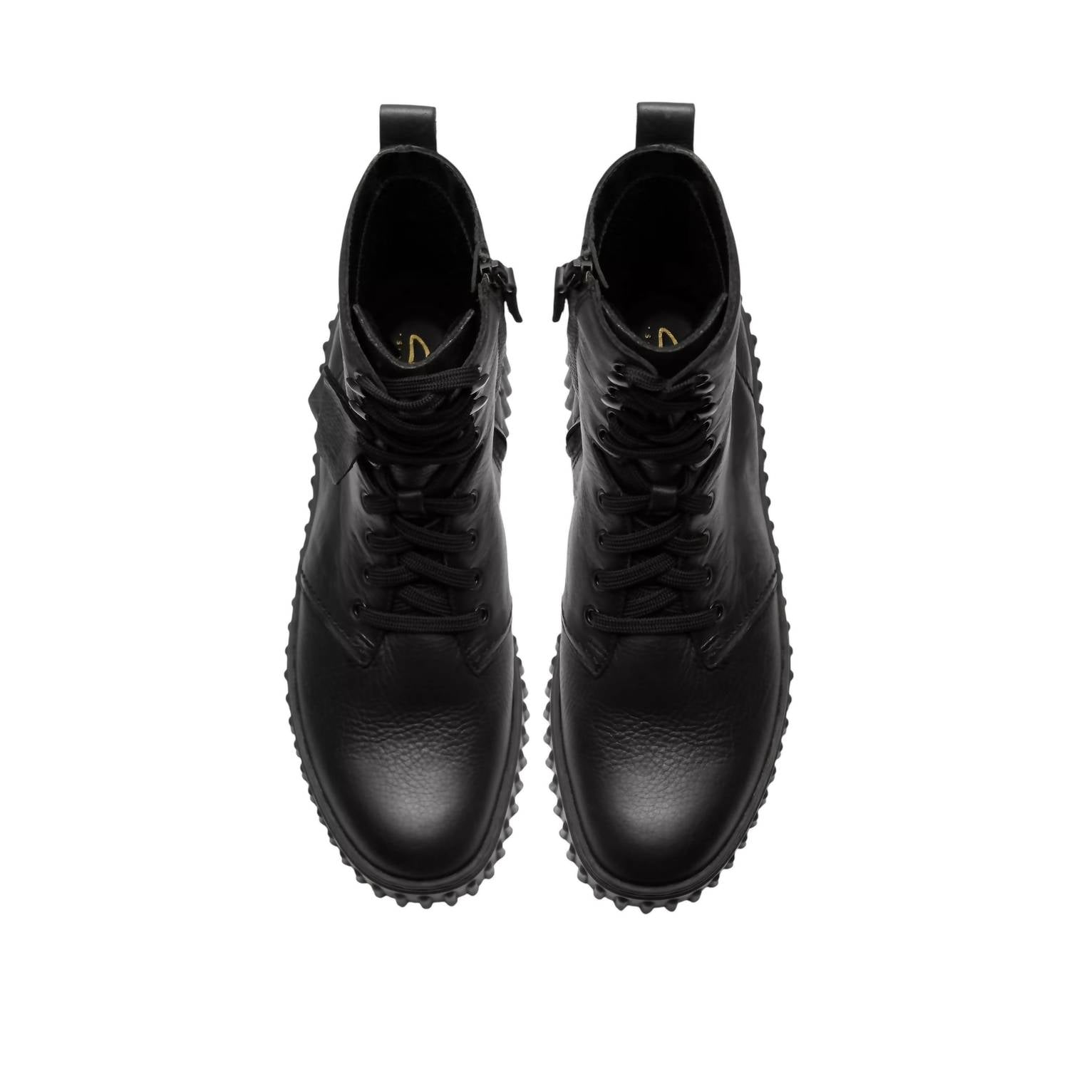 A stylish lace-up boot with a comfortable fit and classic design. Versatile enough to wear with almost every outfit, your closet and feet will be thanking you. Step out in style with the Women's Torhill Style Boot from Clarks, a must-have for your fall wardrobe. Featuring a premium black leather upper, these boots exude a rugged yet refined vibe with a biker-inspired lace-up design. The durable, ribbed TR outsole with an EVA filler provides lightweight traction, all set on a 40mm chunky heel for a trendy preppy look. Inside, enjoy unmatched comfort with Clarks' Contour Cushion footbed, making these boots perfect for all-day wear, especially during travel.