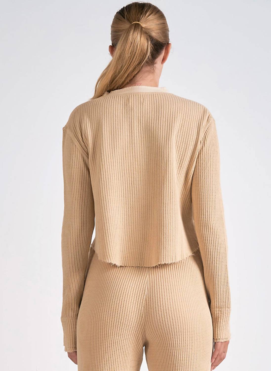 Elan - Waffle-weave Long Sleeve Top