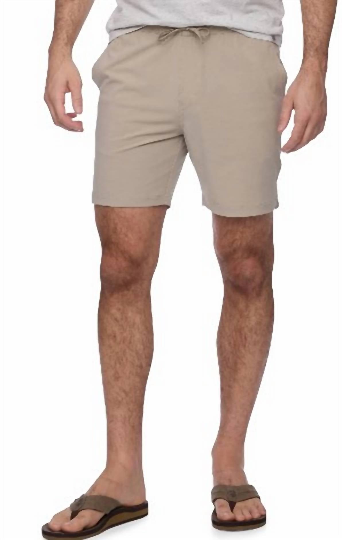 Enhance your wardrobe with the Lockhart Volley Short by Flags & Anthem, crafted for both style and comfort. These khaki shorts feature a practical 7" inseam and are made from a breathable cotton blend. With a convenient tie closure and multiple pockets, they offer functionality for any summer activity. Easily cared for, they are machine washable and should be line dried.