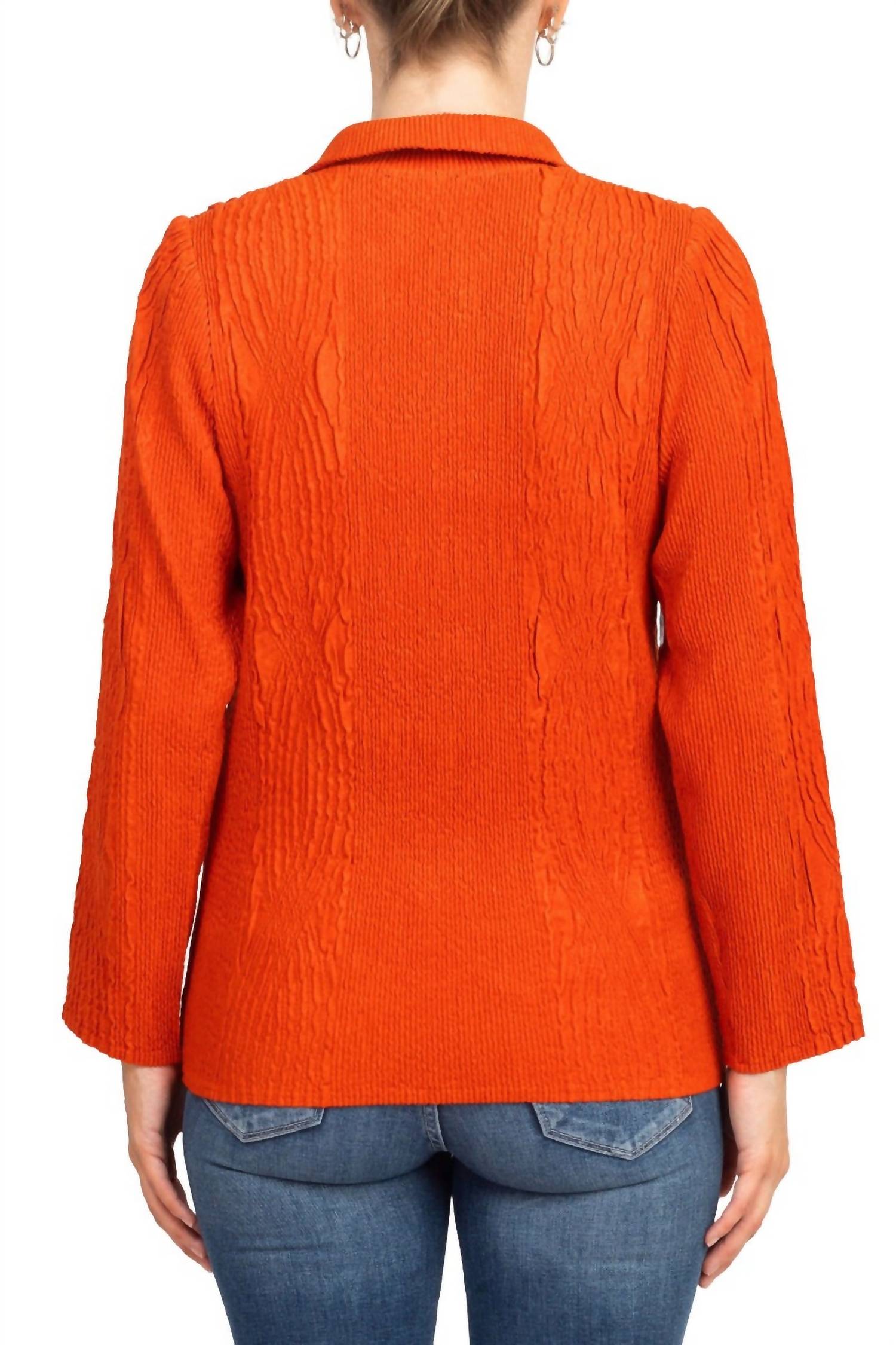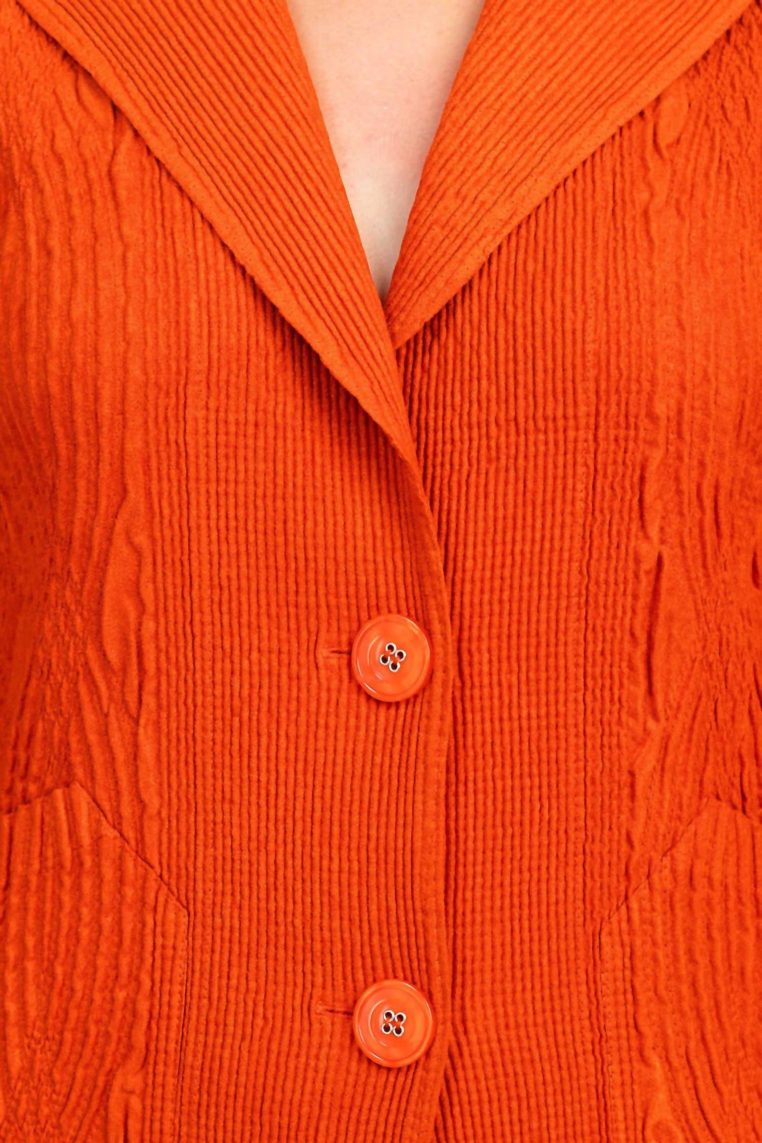 An elevated version of your favorite classic blazer. Introducing the Flair Notched Collar Faux Suede Jacket by Flair Wear, a chic addition to any professional wardrobe in a stunning Sunset hue. This jacket boasts long sleeves and is crafted from 100% polyester, providing the luxurious feel of faux suede with the practicality of machine wash care. Its elegant long sleeves and two-button front closure create a polished silhouette, enhanced by the refined notched collar. Ideal for fall workwear, this textured piece is versatile enough to effortlessly pair with trousers, skirts, or dresses.