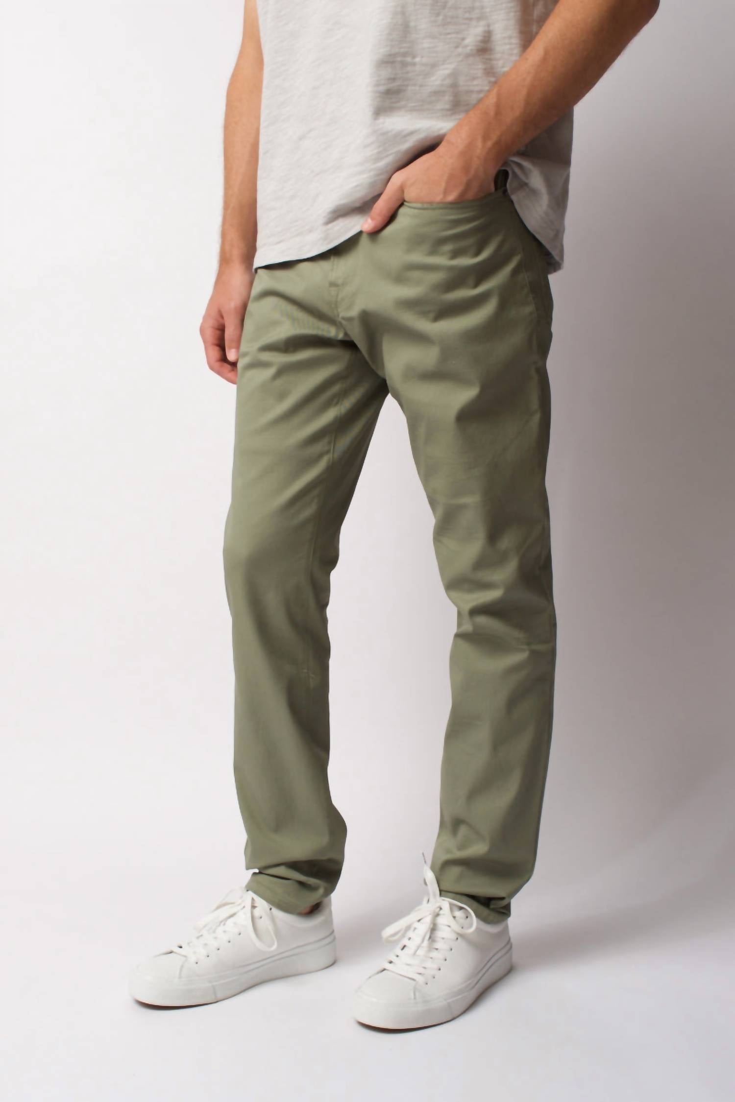 The FRAME L'Homme Slim Jean in Deep Army offers a refined silhouette with its slim fit and mid-rise style. Crafted from a blend of 95.5% cotton, 3% polyester, and 1.5% elastane, these jeans provide just the right amount of stretch for comfort. The jeans feature a button zip fly closure and a five-pocket design, perfect for practical wear. Proudly made in the USA, they are machine washable for easy care. Model is 6'1" wearing size 31.
