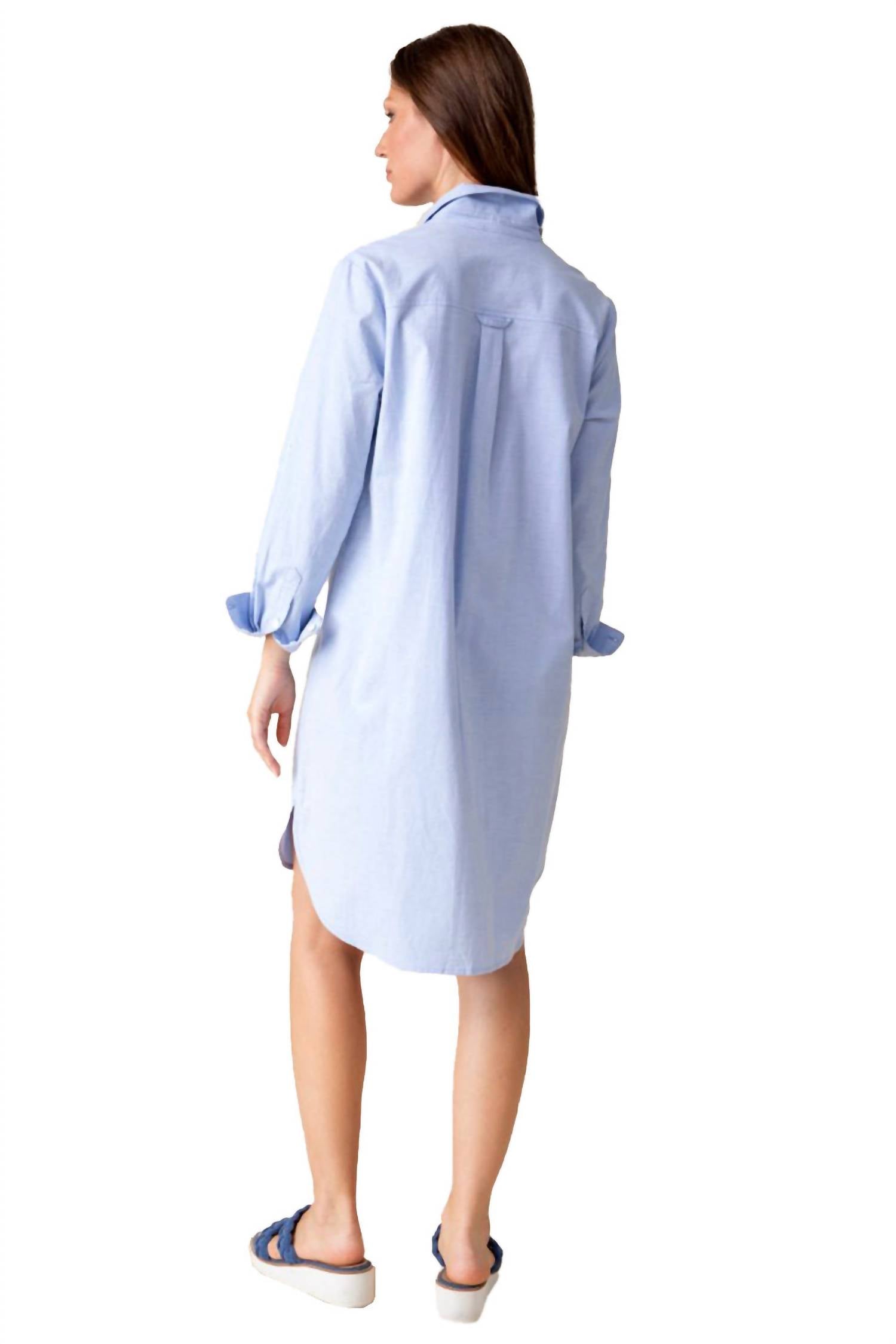 Cute and comfortable, this long sleeve dress has it all. Elevate your travel wardrobe with Habitat's Perfect Travel Cafe Dress in Oxford Blue, crafted for effortless style and comfort. This women's shirt dress features long sleeves and a collared neckline, offering a versatile silhouette that can be worn with a tie or belt at the waist. Its breathable, lightweight fabric and extra-long design make it ideal for vacation getaways, with a button front closure and a convenient small pocket. This solid-patterned dress promises to be a standout piece for spring, inspired by 90s fashion trends.
